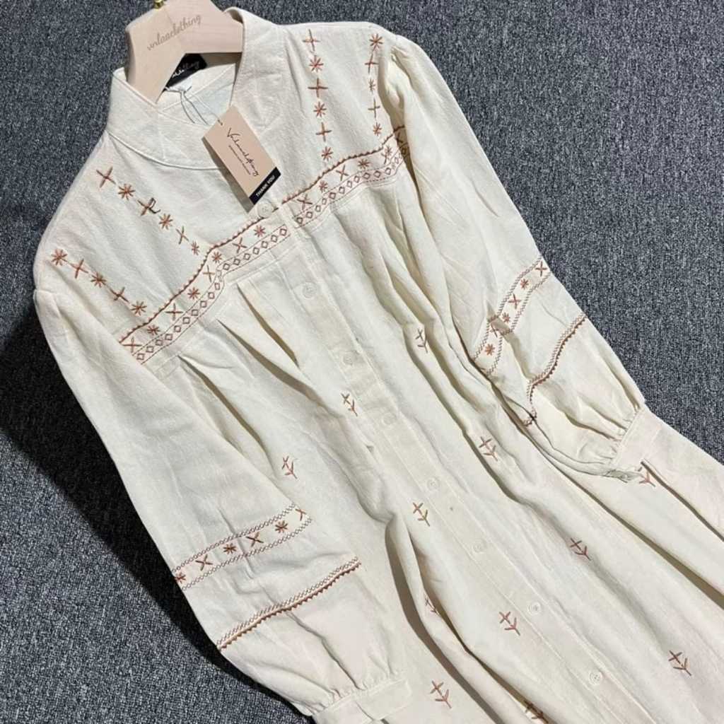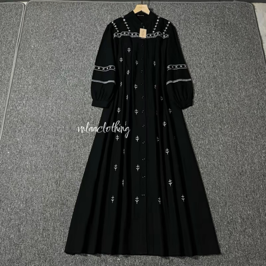 DAVINA DRESS RAYON TWILL BORDIR PREMIUM BY QIANA_GALLERY PANJANG BAJU 135 CM LINGKAR DADA 120CM
