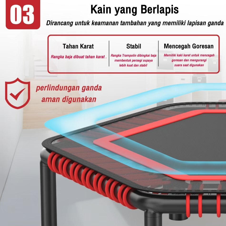 Trampoline Dewasa KUAT HINGGA 200KG Alat Olahraga Fitness Elastis Lompat Indoor Outdoor