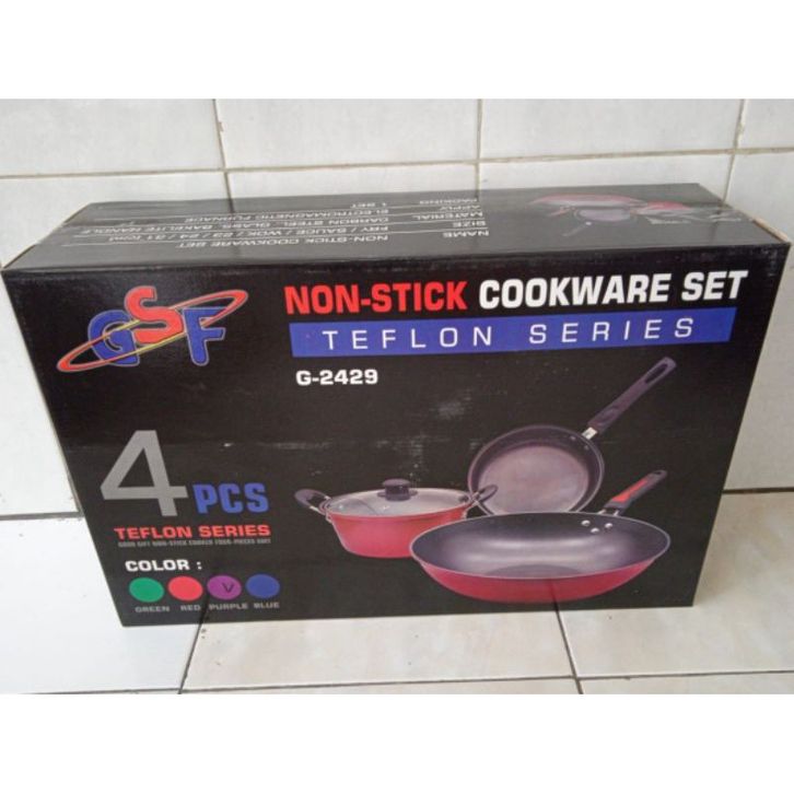 PANCI WAJAN SET TEFLON ANTI LENGKET GSF 2429 QME 2432 COOKWARE SET TEFLON MURAH KADO NIKAH PERNIKAHAN TUTUP KACA