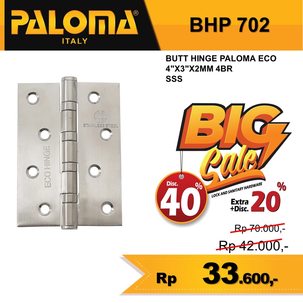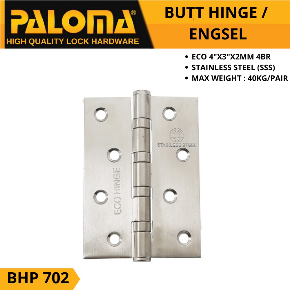 ENGSEL PINTU 4 INCH PALOMA BHP 702 4"X3"X2MM 4BR SSS Stainless Steel BUTT HINGE