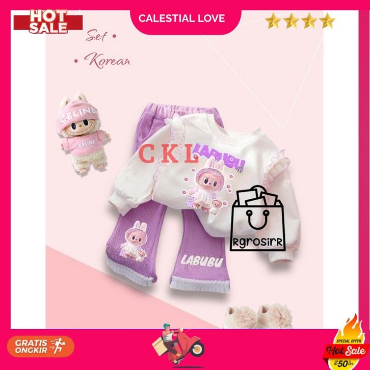 [Star] Setelan Anak Korean Viral Motif Labubu Usia 1-5 Tahun/ Setelan Anak Perempuan/ Setelan Anak Viral