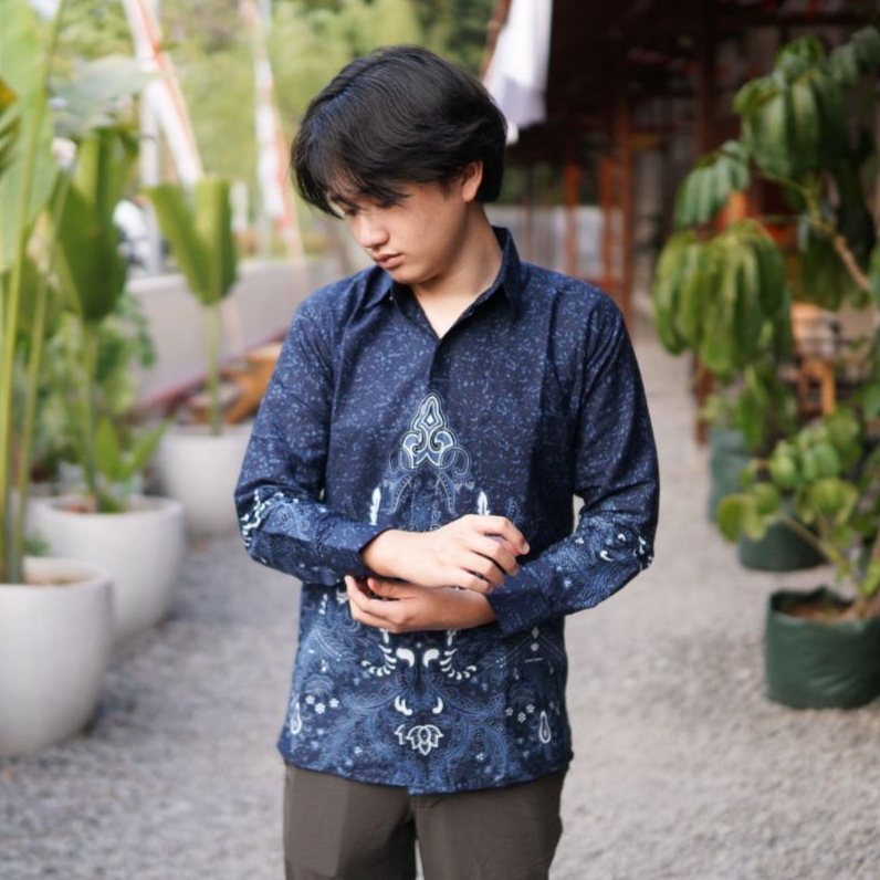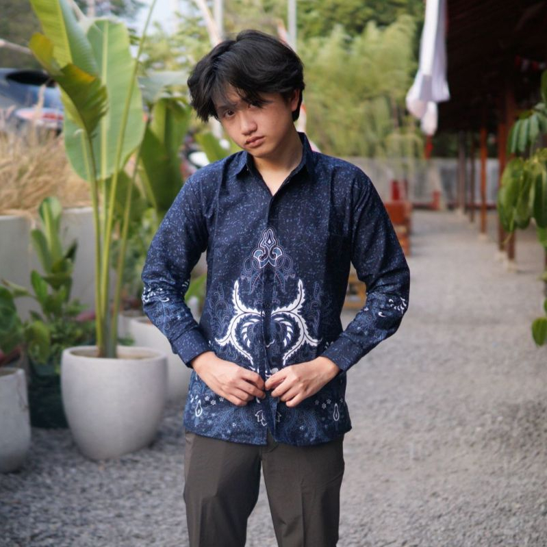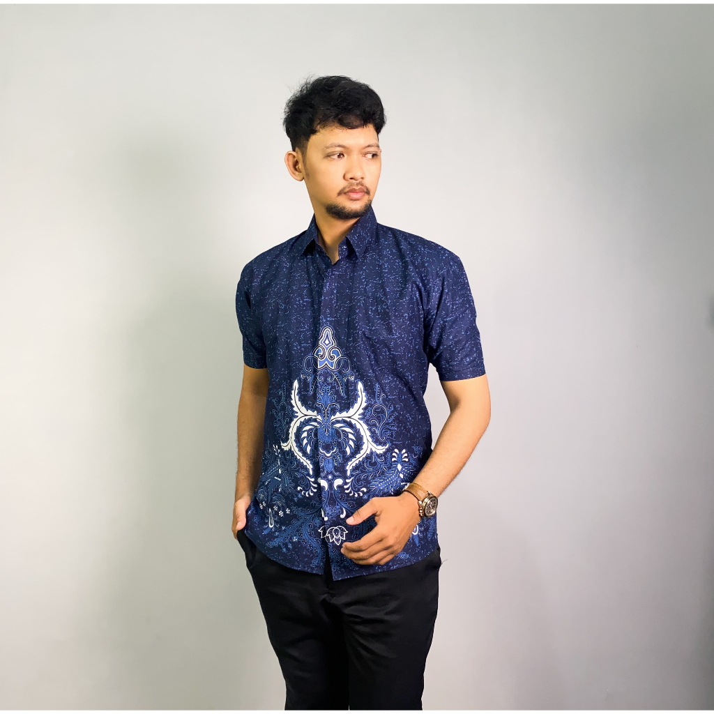 Batik Abimanyu Navy Dongker Nyaman Katun Slimfit Panjang Pendek Jumbo