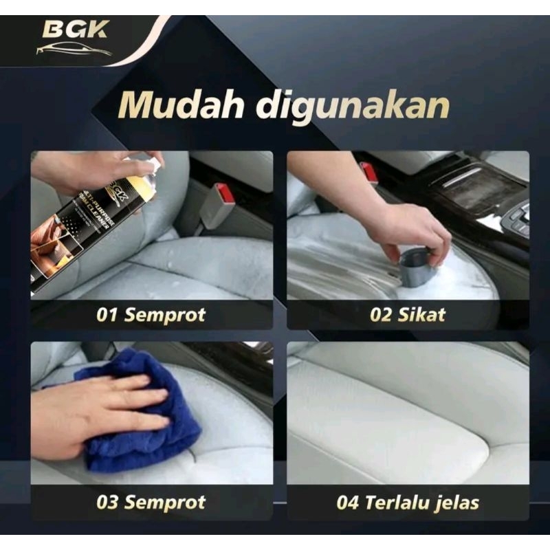 BGK PEMBERSIH INTERIOR MOBIL KENDARAAN PEMBERSIH MESIN BODY BAN MOBIL MOTOR SERBAGUNA MULTIFUNGSI 650ML FREE SPONS SIKAT