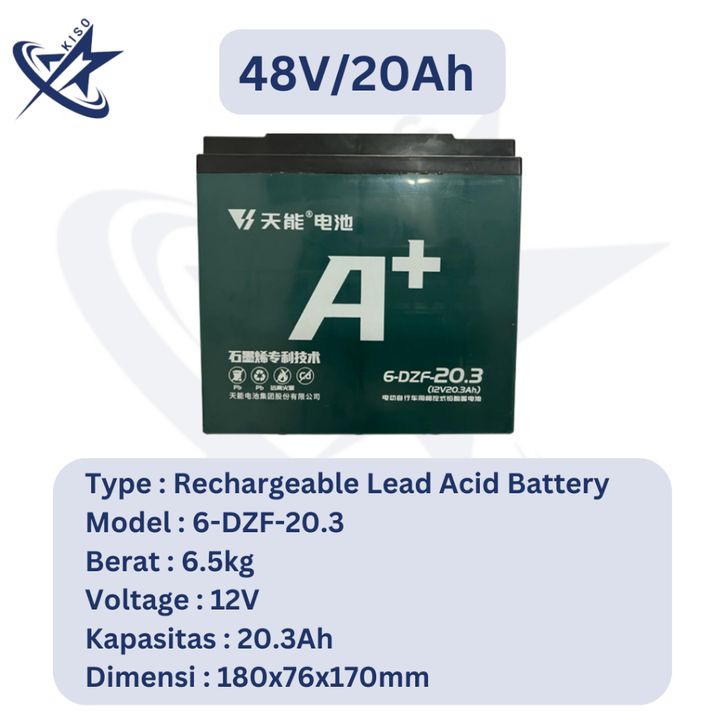 KISO Baterai Batre Aki 48V/12Ah & 48V/20Ah Sepeda Listrik Skuter Listrik Motor Listrik Tian Neng Indonesia