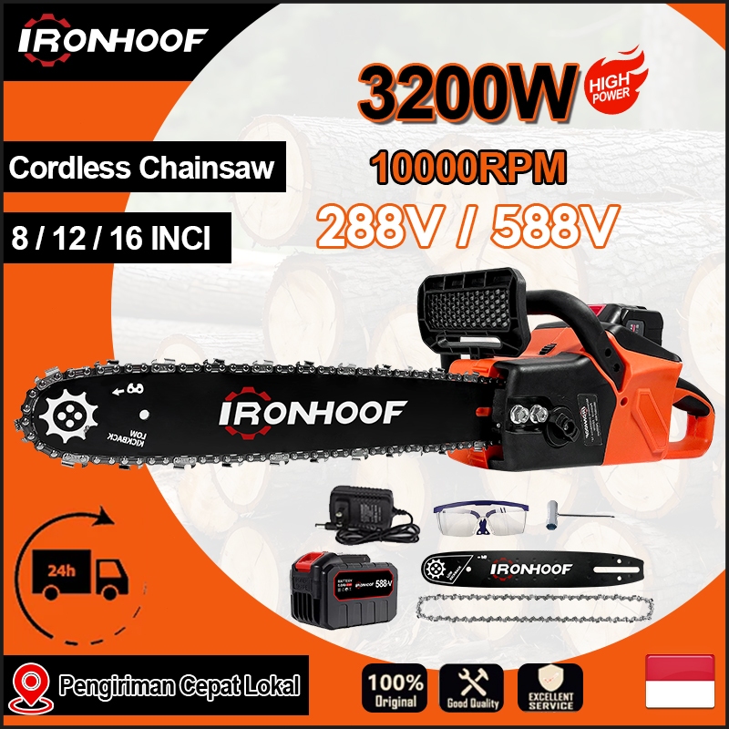 IRONHOOF 16 INCI GERGAJI MESIN 588V GERGAJI LISTRIK GERGAJI BATERAI GERGAJI RANTAI ELEKTRIK MINI CORDLESS CHAINSAW