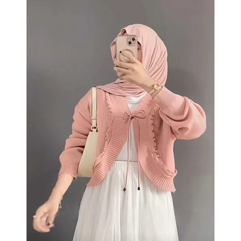 Cardigan Korean Style Bolero Pevita Outer Knit Coquette Series Premium Cardigan Wanita Motif Polos Lengan Panjang Murah