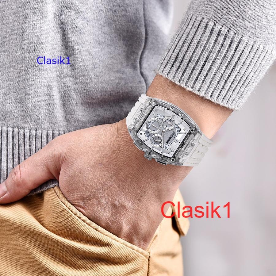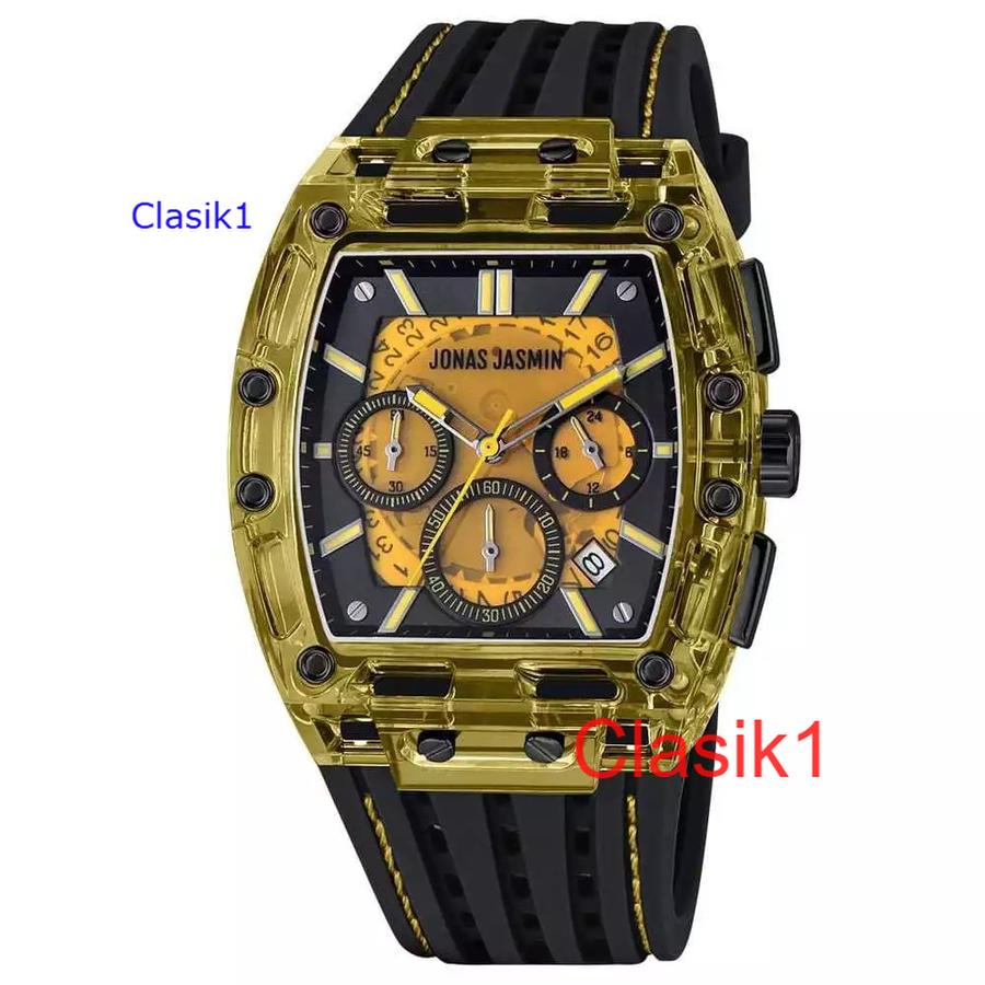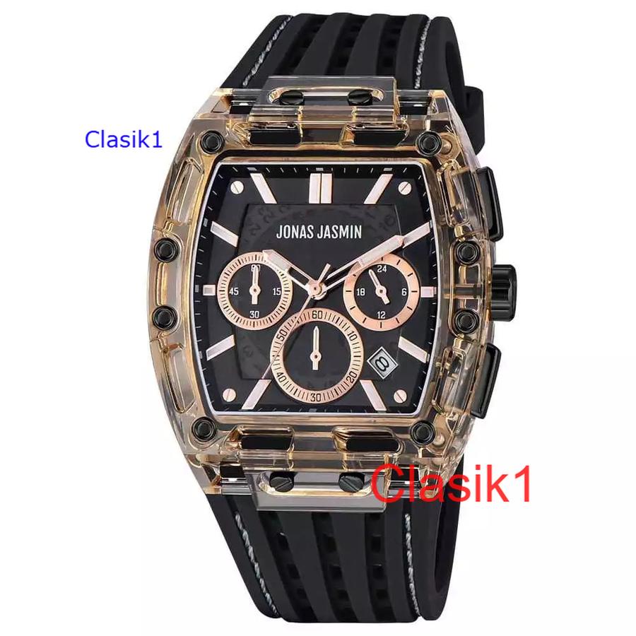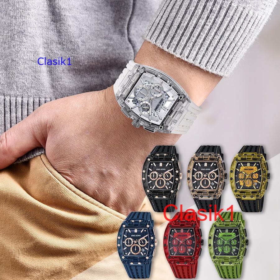 Original 100%!! Jam Tangan Pria Jonas Jasmin-5355 Original Tali Rubber Body Karet Transparan Chron&Tanggal Aktif Garansi