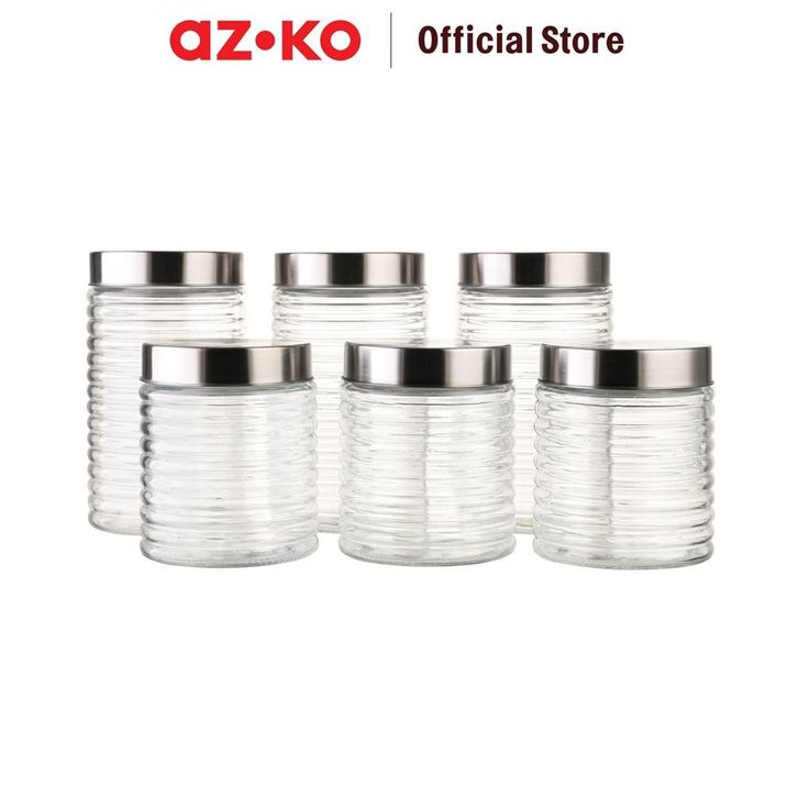 AZKO Kris Set 6 Pcs Stoples Kaca Screw Lid Jar Tempat Simpan Snack Dan Permen Perlengkapan Dapur Wadah Makanan Setoples