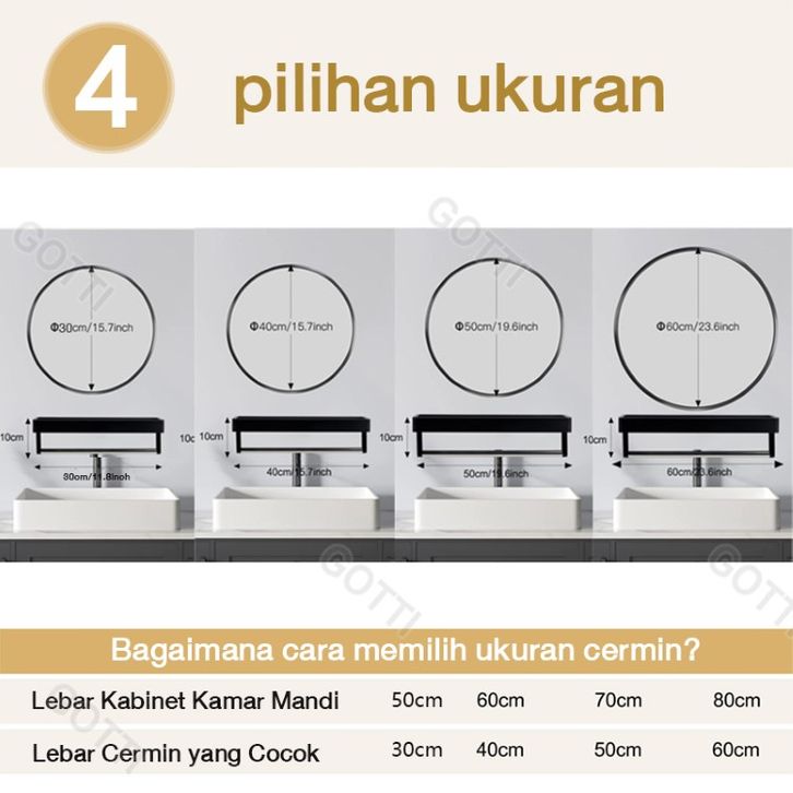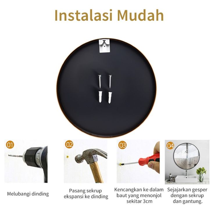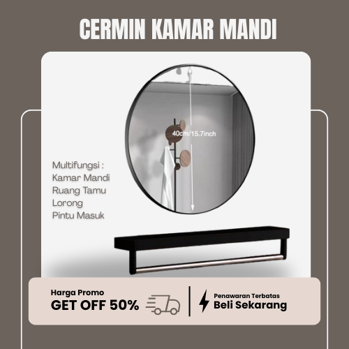 Cermin Dinding Tempel Aesthetic- Cermin Gantung Tempel Minimalis Bentuk Bulat Kaca Mirror Kamar Mandi Keren Dengan Rak