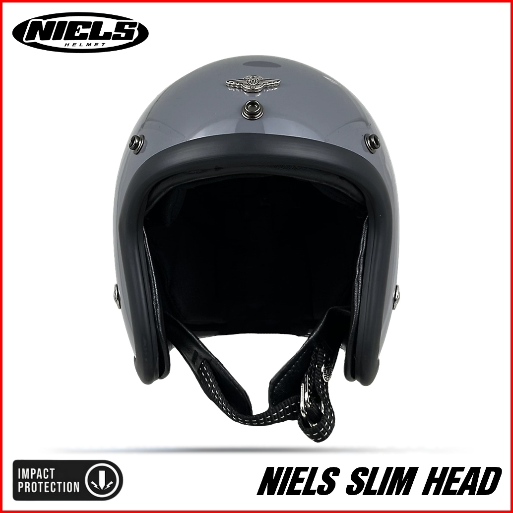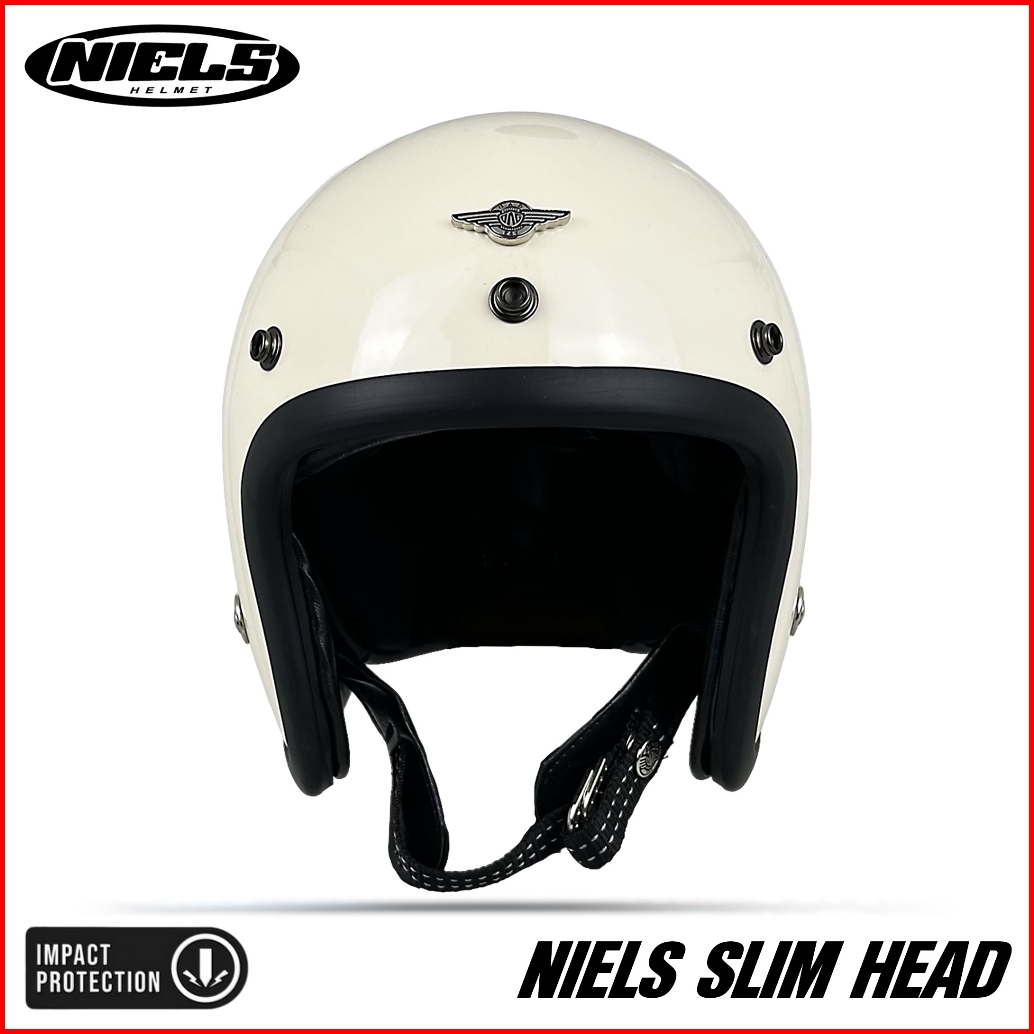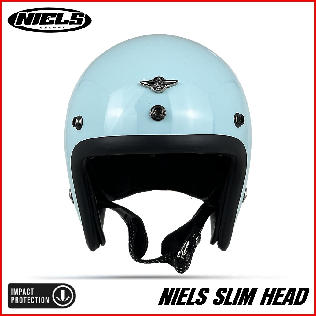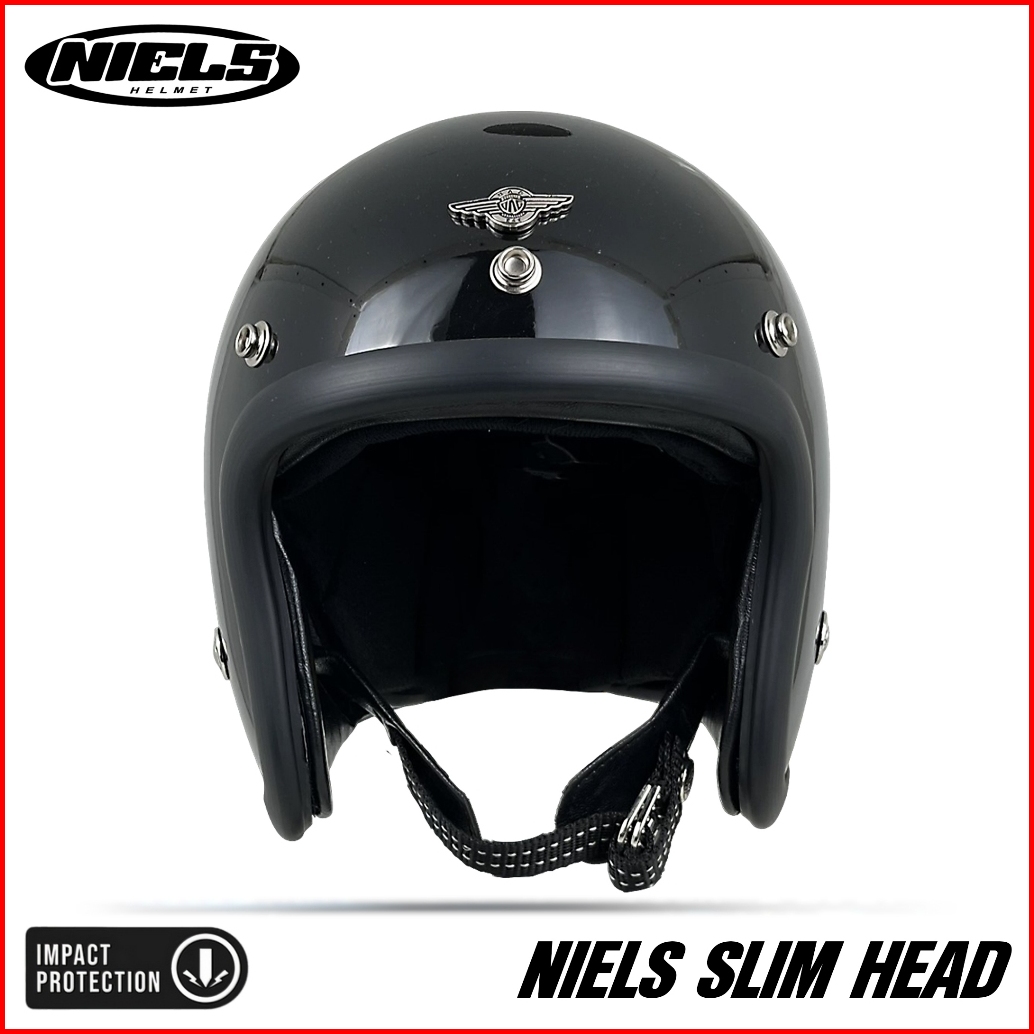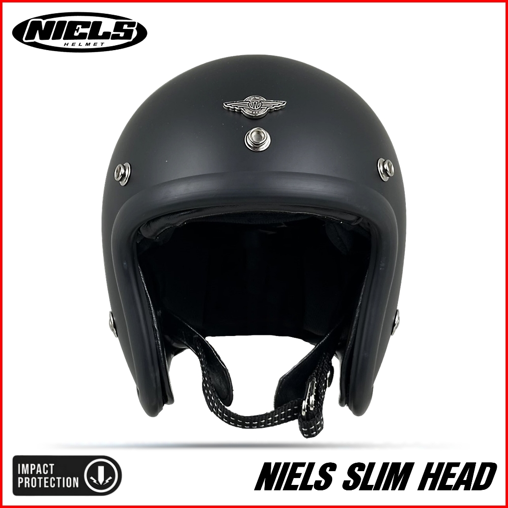 Niels - Helm Bogo Retro Slim Head Pet Pendek Kaca Datar Sni Motorcycle
