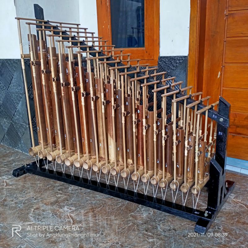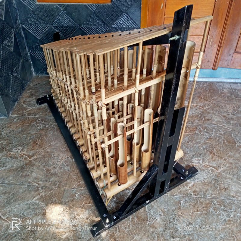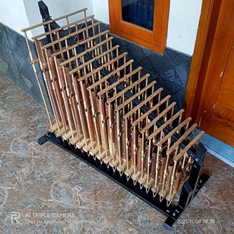Angklung Pengamen 18 Nada 3 Tabung Bambu Hitam ( Pake Palang Atas) Nada E - A