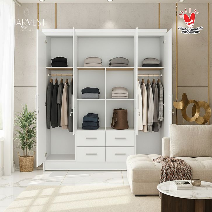 LEMARI PAKAIAN 4 PiINTU MINIMALIS MODERN LEMARI BAJU GARANSI RESMI