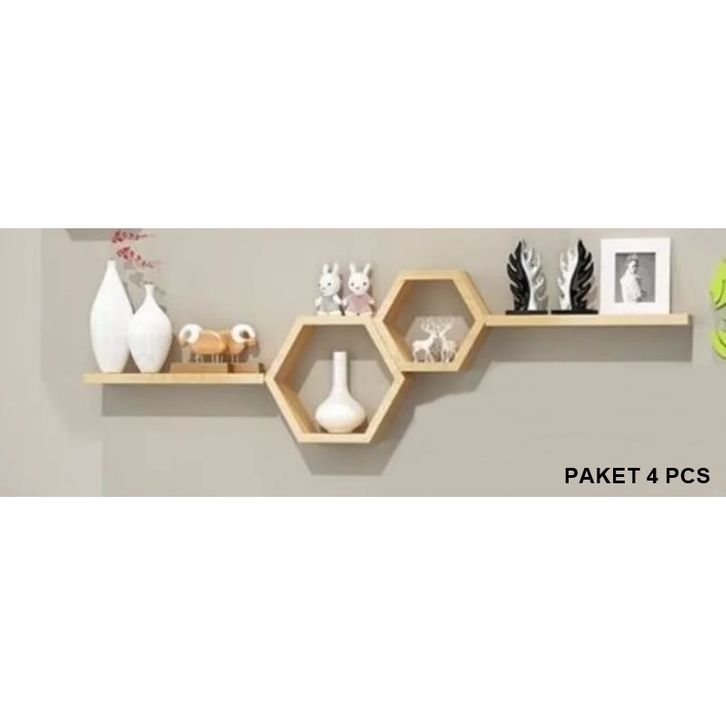 GARRDENN Rak Dinding Hexagonal Hiasan Dinding Aesthetic Rak Hexagonal Kayu Jati Belanda Pajangan Hiasan Dinding Ga