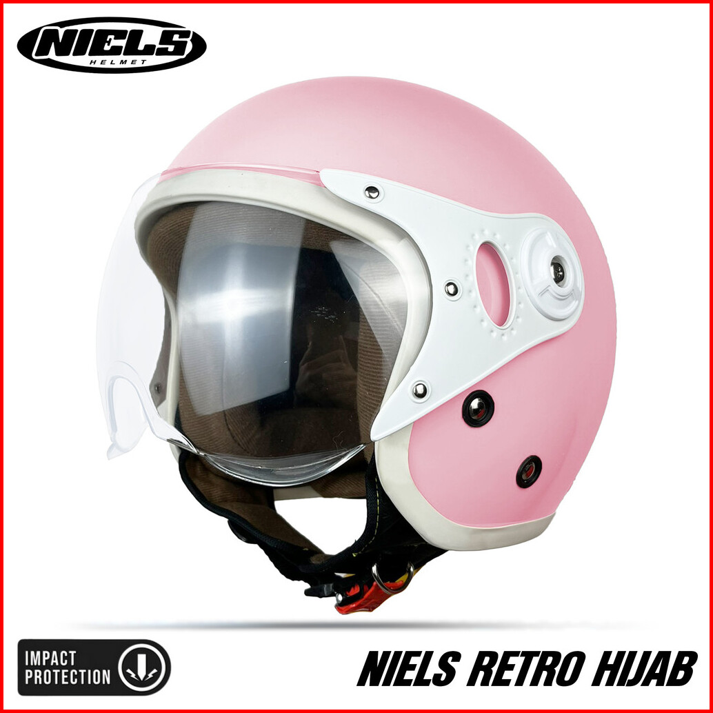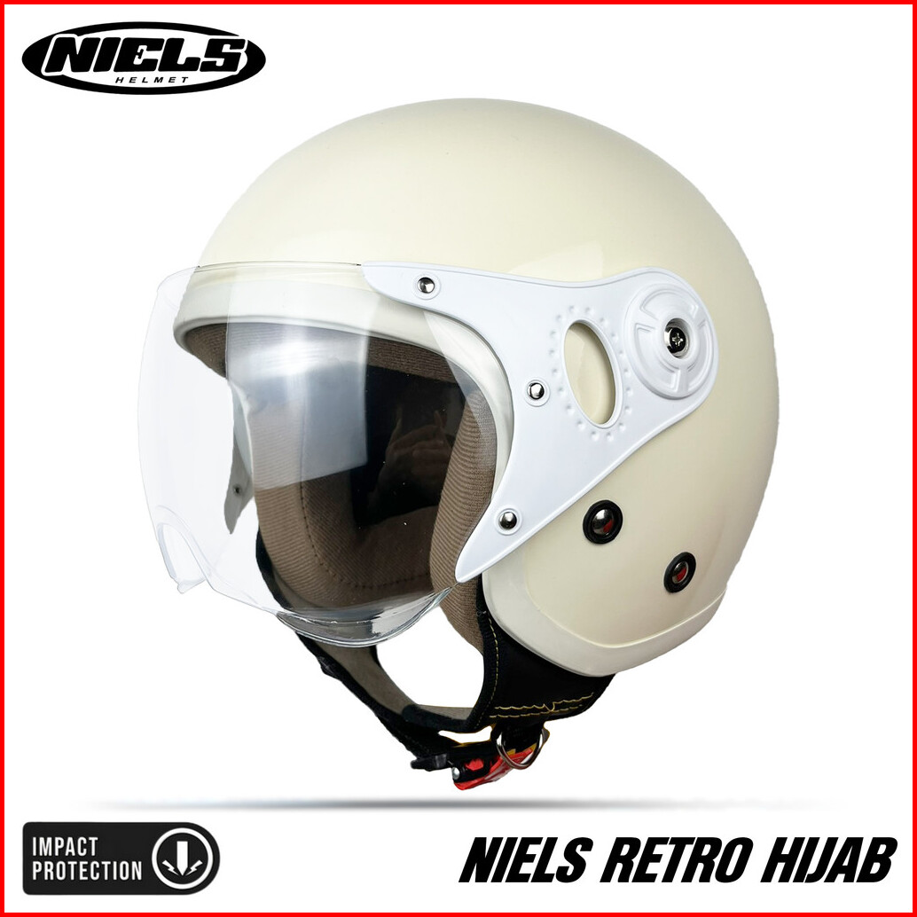 Niels - Helm Bogo Retro Hijab Dewasa Kaca Pilot Sni Motorcycle List Putih