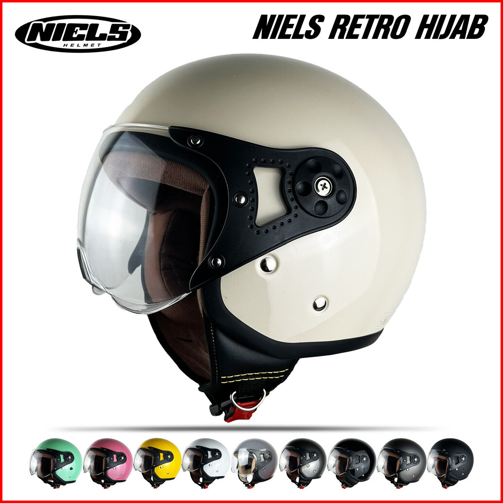 Niels - Helm Bogo Retro Hijab Dewasa Kaca Pilot Sni Motorcycle Cream