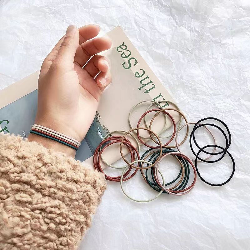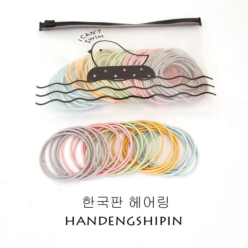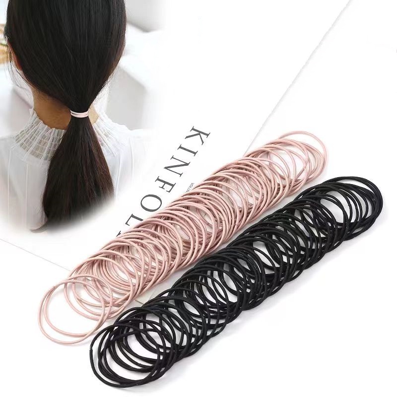 ( TERLARIS )Ikat Rambut Karet Polos Elastis Gaya Korea untuk Wanita /FREE POUCH - 100PCS Ikatan Rambut Korea Warna Warni