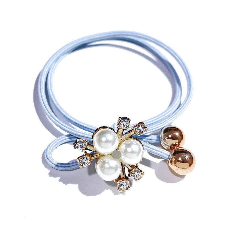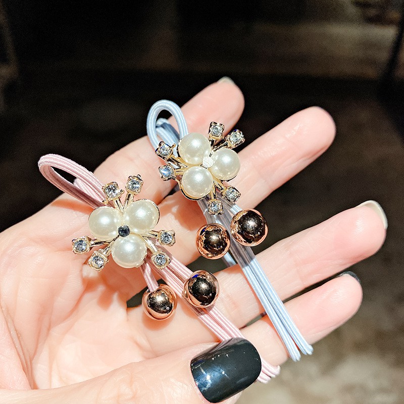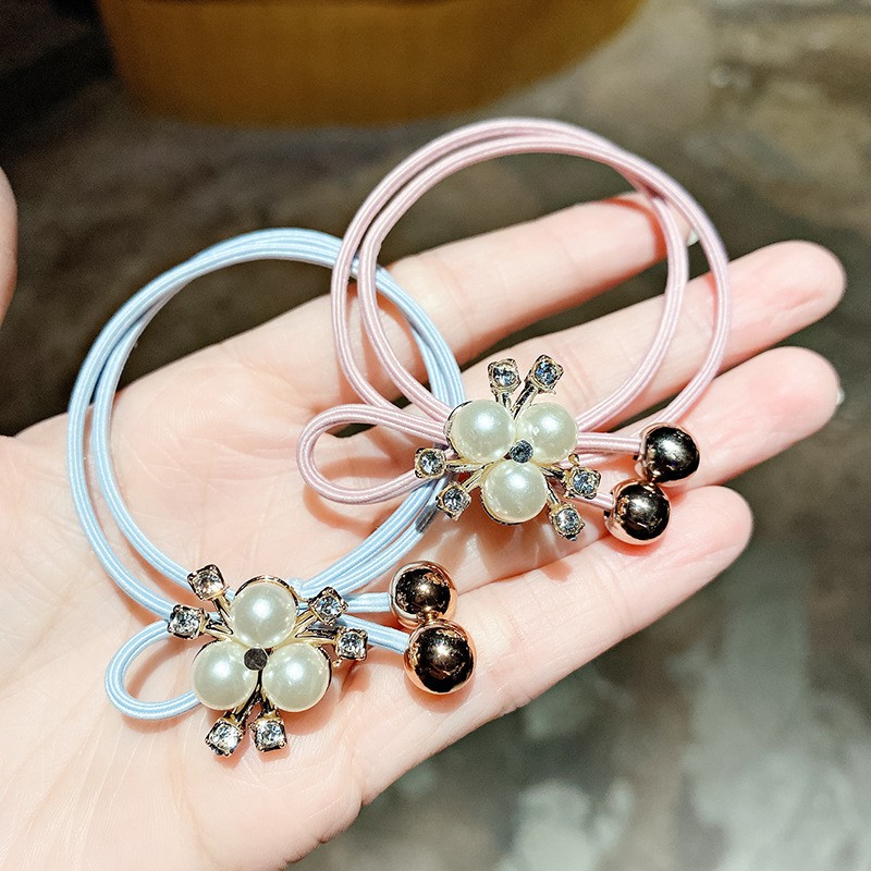 ( TERLARIS ) Ed - Ikat Rambut Korea 3 Mutiara Crystal Import / Ikatan Rambut Karet Motif Korea Style