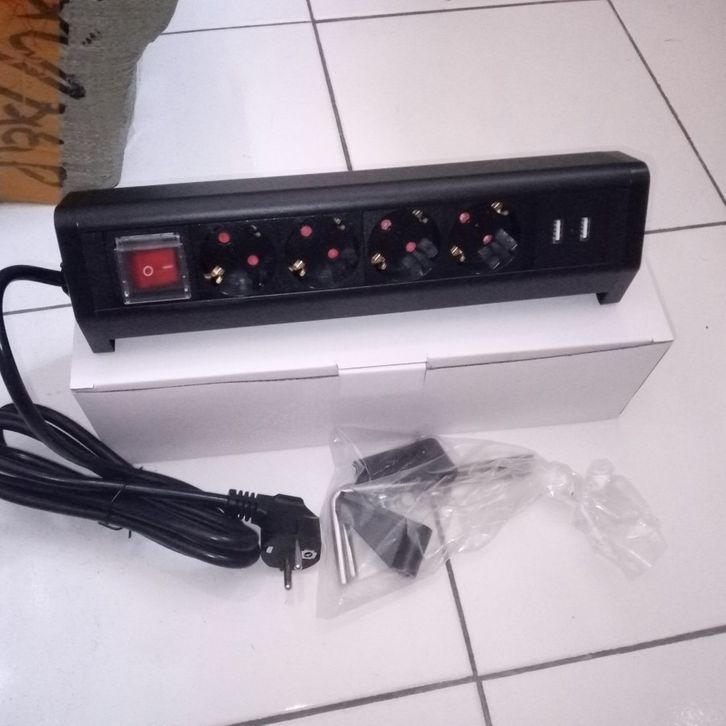 TERLARISSS STOP KONTAK MEJA PDU 4 ANTI PETIR WITH 2XUSB FAST PORT PDU4G2
