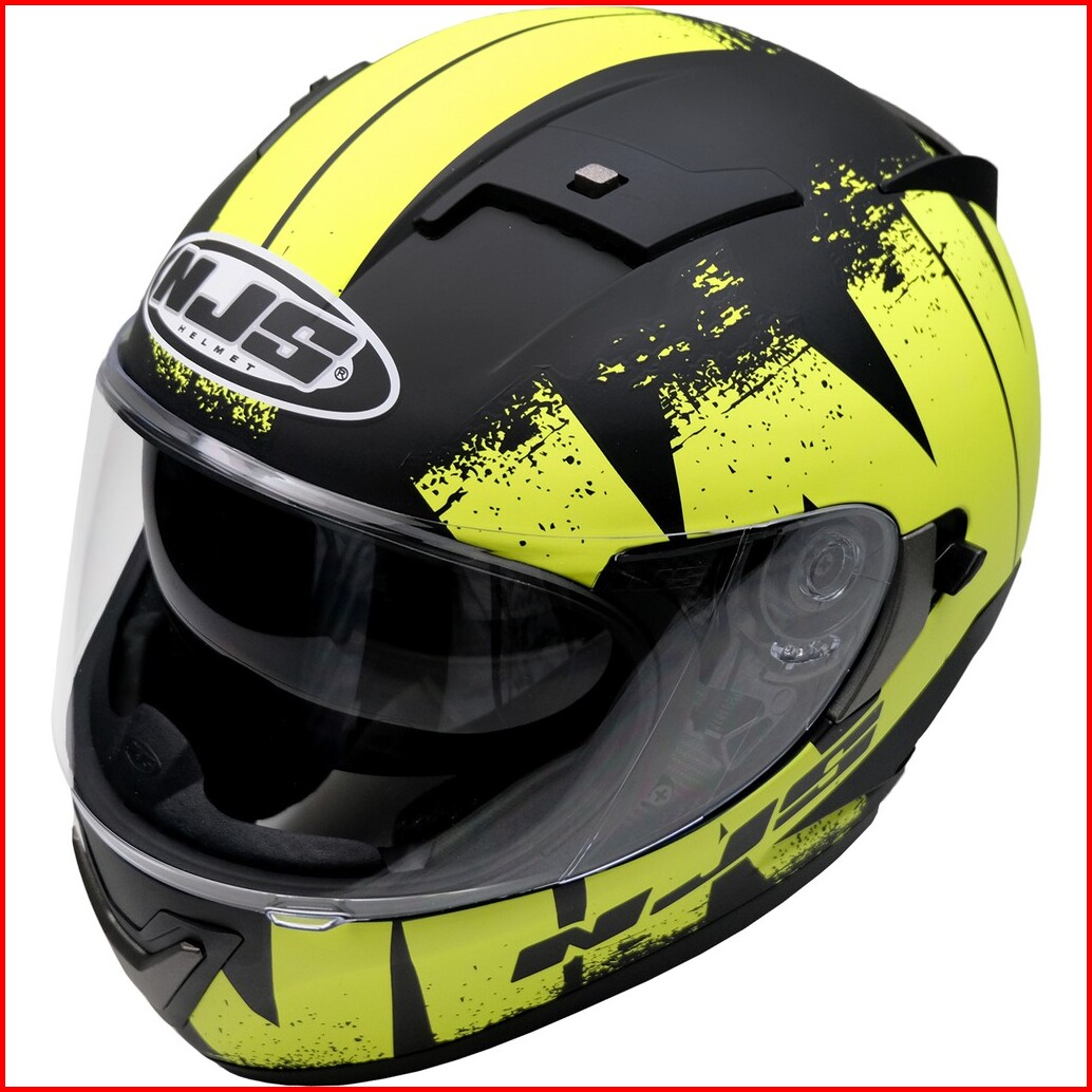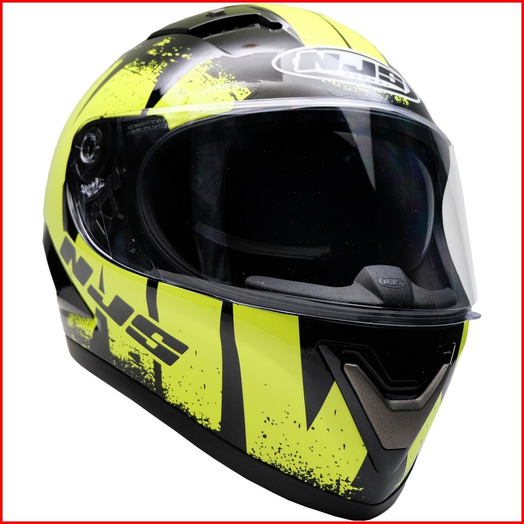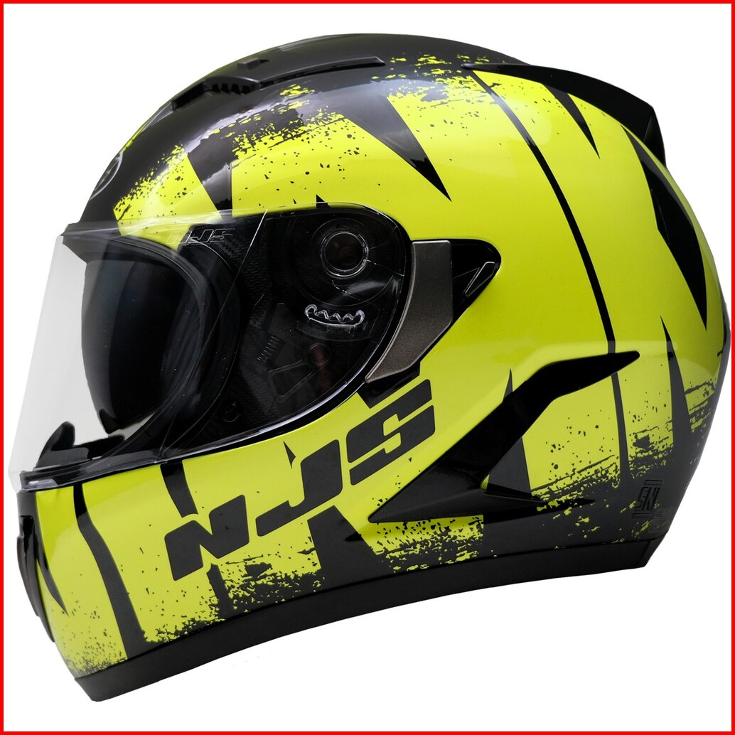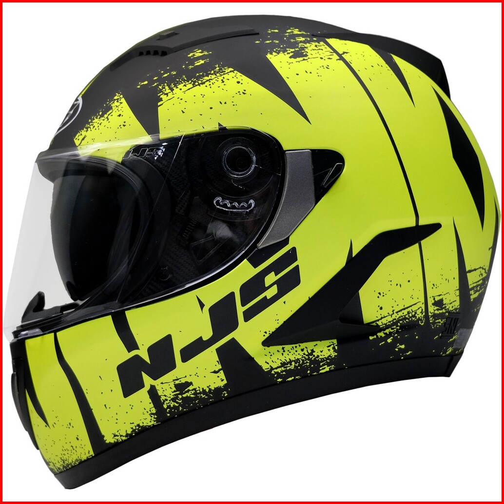 Njs Shadow Reaper Hitam Doff Gloss - Kuning Fluo Free Smoke Visor - Helm Full Face Shadow Shadow Motif Njs Fullface Njs