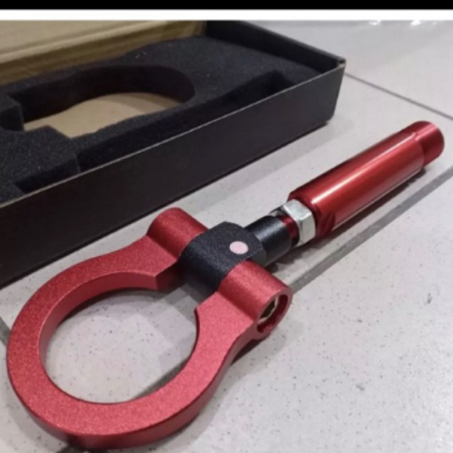 towing hook besi derek mobil jazz brio merah + towing kain strap warna merah hitam