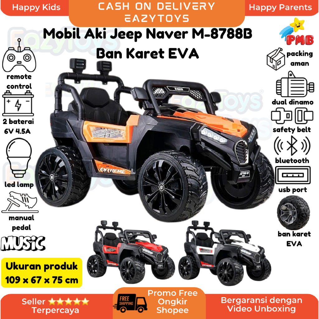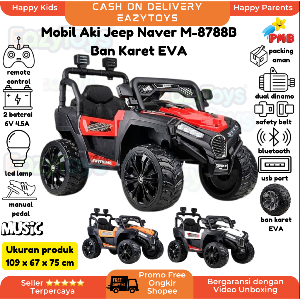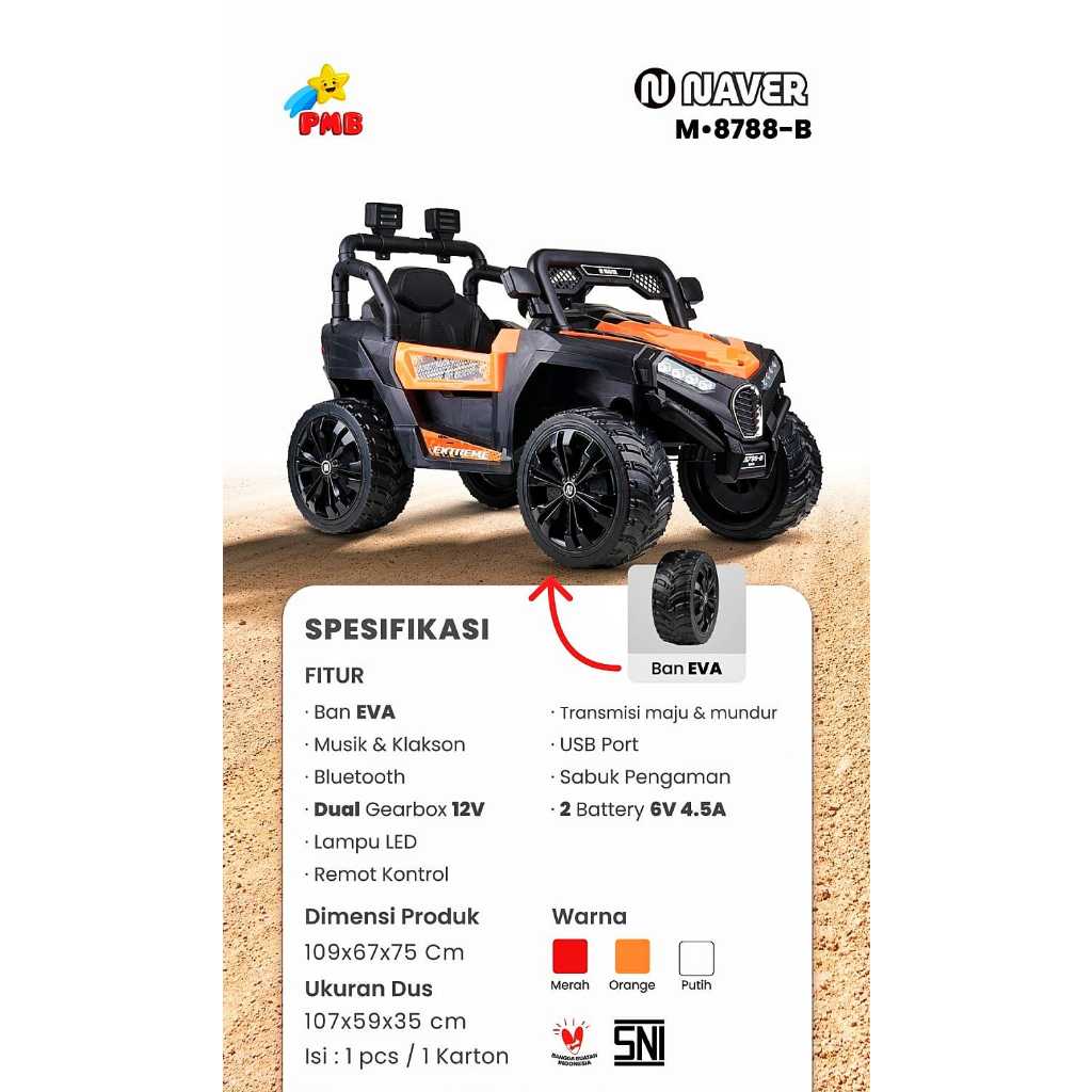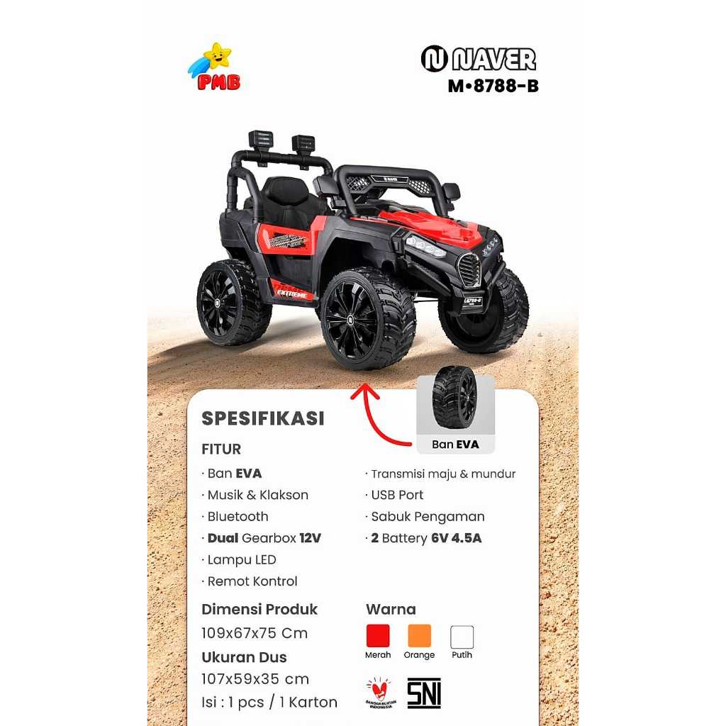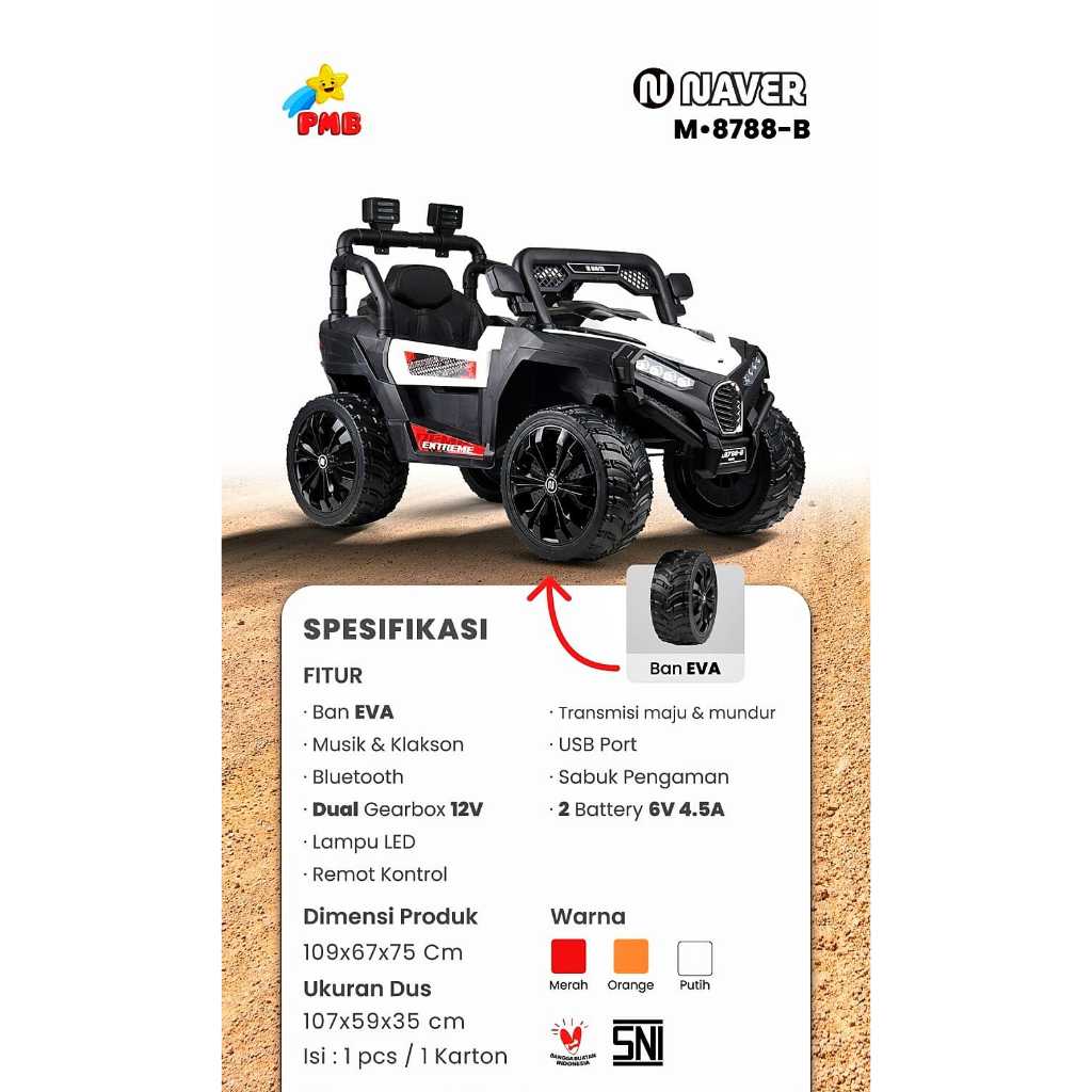 mobil aki anak jumbo Mainan Mobil Aki Anak Jip Naver PMB M8788B Ban Karet EVA 2 Gearbox mobilan anak bisa dinaiki