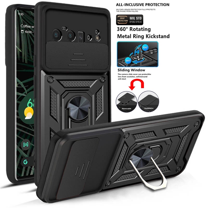Armor Lens Ring Case Google Pixel 6 Pro - Camshield Stand Cover Casing Black Shock Proof