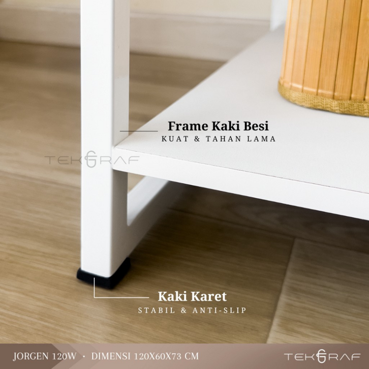 MEJA AESTHETIC MULTIFUNGSI RAK SERBAGUNA MINIMALIS JORGEN 120 W KAKI BESI ANTI RAYAP JAMUR TAHAN AIR BEST SELLER