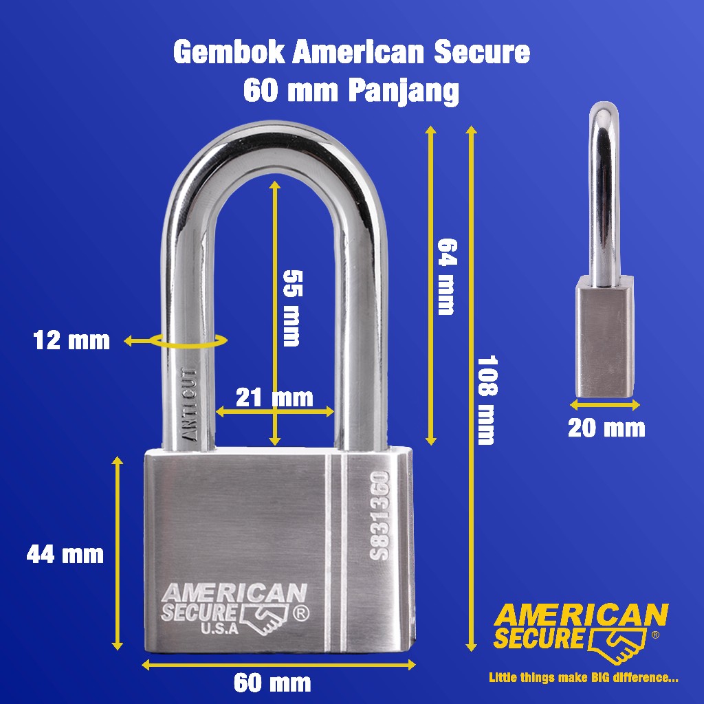 NEW ORIGINAL American Secure Gembok 60mm Panjang S831360