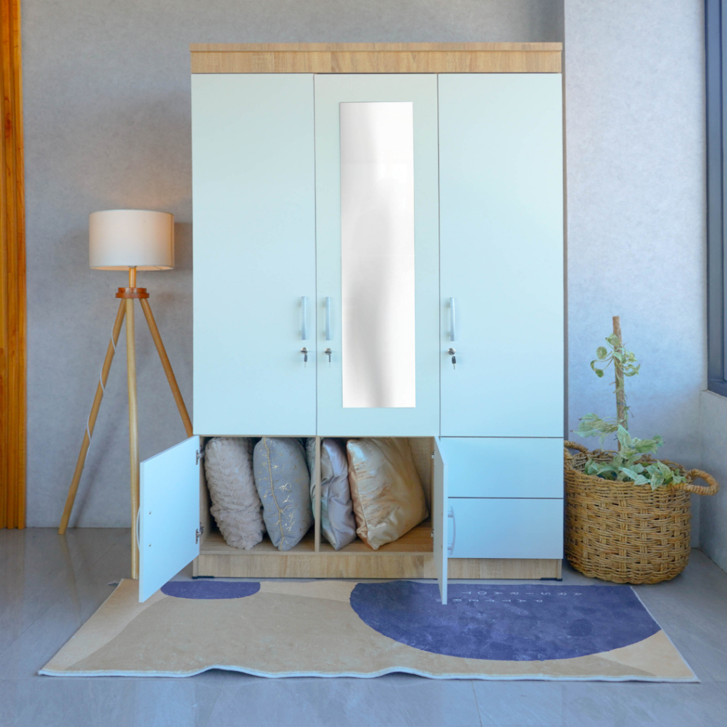 Lemari Baju Sliding Kayu 3 Pintu / 4 pintu / Lemari pakaian minimalis modern / lemari pakaian besi /Murah Best seller