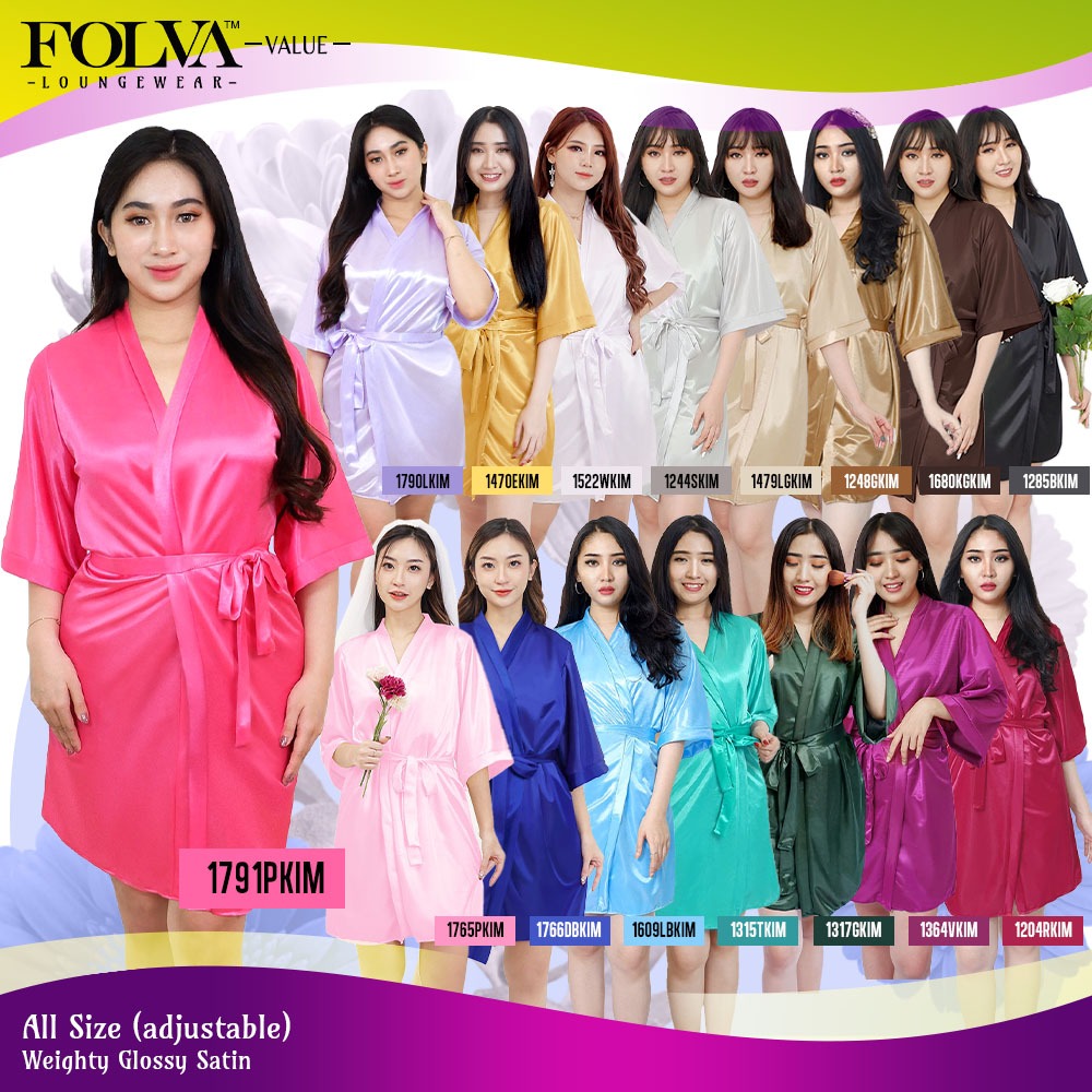 FOLVA Baju Tidur Piyama Wanita Kimono Bridesmaid robe satin all size