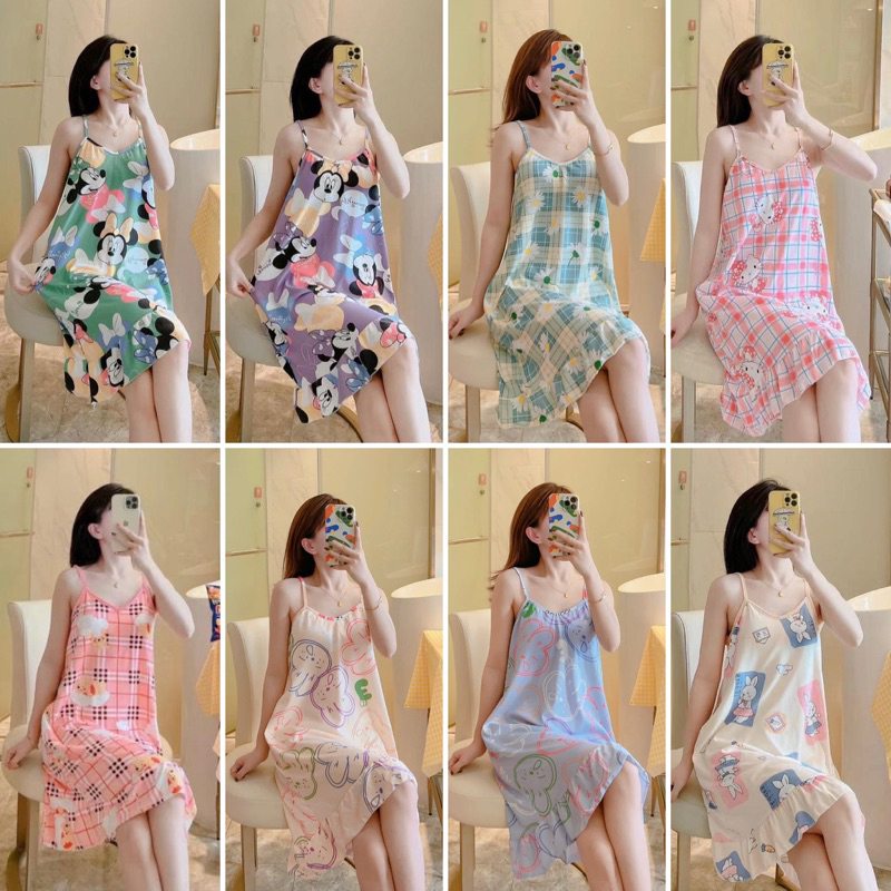 RESTOK Daster Dress Tali Satu Import Cup Bra/Setelan Wanita Kekinian Import