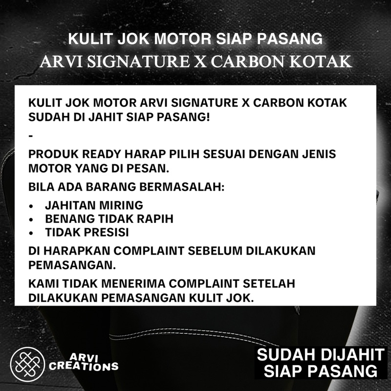 Kulit Jok Motor Arvi Signature X Carbon Kotak Catur Original Arvicreations SUDAH DI Jahit Tinggal Pasang Cover Jok Motor
