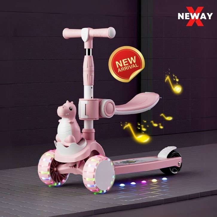 Scooter Mainan Anak Capybara 2 In 1 Skuter Lipat Duduk Kapibara Lucu Roda Tiga Lampu Musik Toys