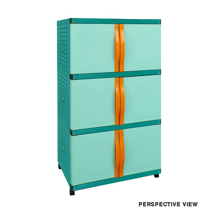 Lemari Plastik Cub Mini Solitaire (SOR) Rotan 3 Susun Modern Minimalis Elegan Klasik Classic Coklat Biru Hijau