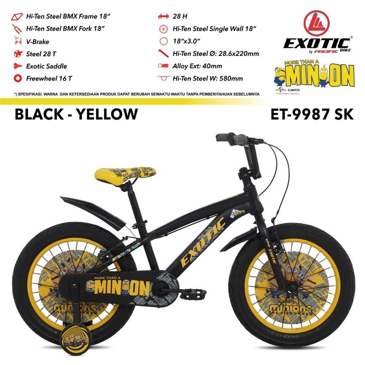 Terbaru Sepeda Anak Cowok Laki Laki BMX Exotic ET 9987 SK Ukuran12, 16 & 18 Inch Ban Jumbo 3.0 Minion Edition