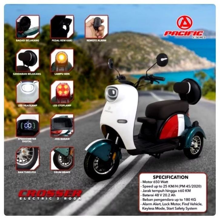 Terbaru Sepeda Listrik Elektrik 3 Roda Pacific CROSSER