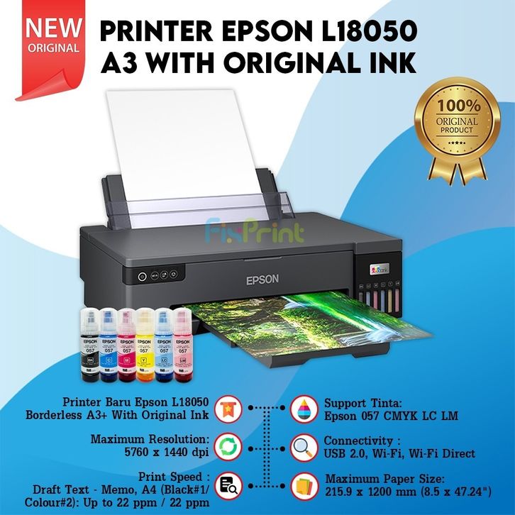 Printer EcoTank Epson L18050 Wireless Wifi A3 Pengganti L1800 Printer Photo Borderless 6 Color Garansi 057 Mesin Print