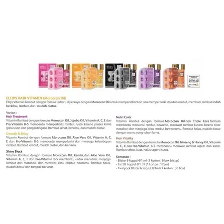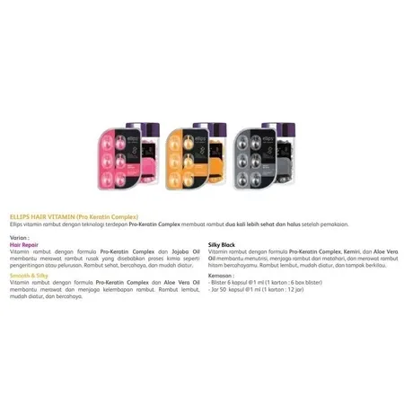 ELLIPS Hair Vitamin Series Blister Keratin | Balinese Essential Oil (isi 6 Butir)