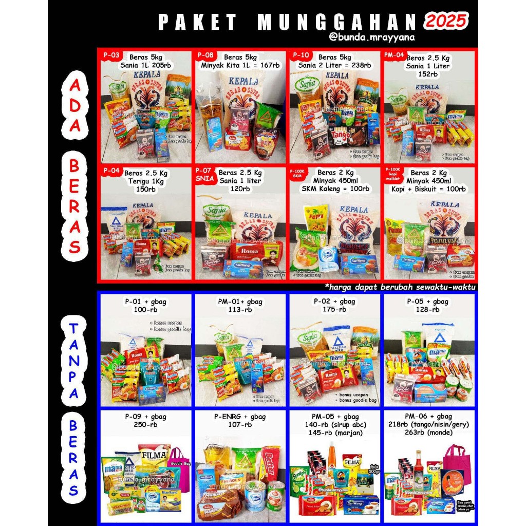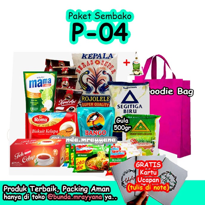 SEMBAKO BERAS 2.5 KG TERIGU 1KG SANTAN KARA KECAP 200ML GULA 500GR MIE INDOMIE 6PCS TEH CELUP ROMA KELAPA 300GR