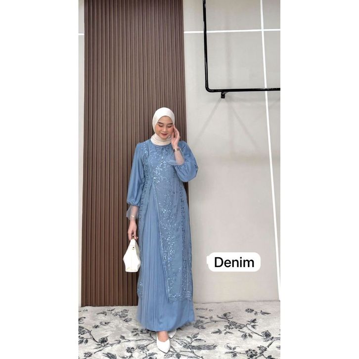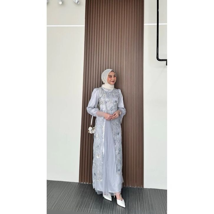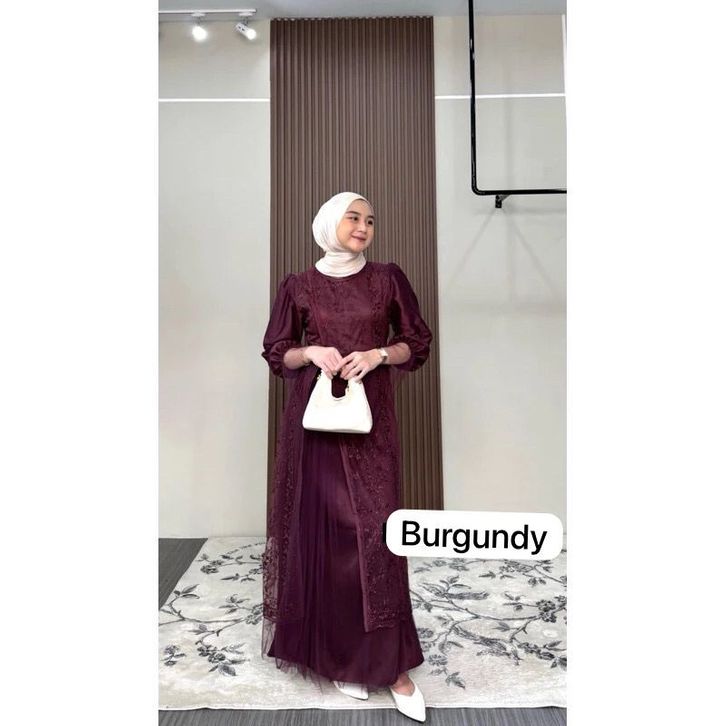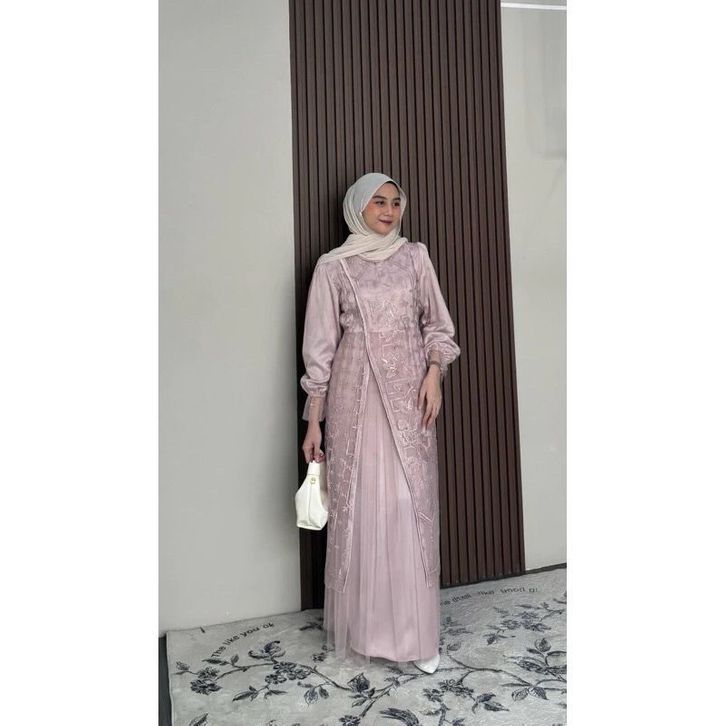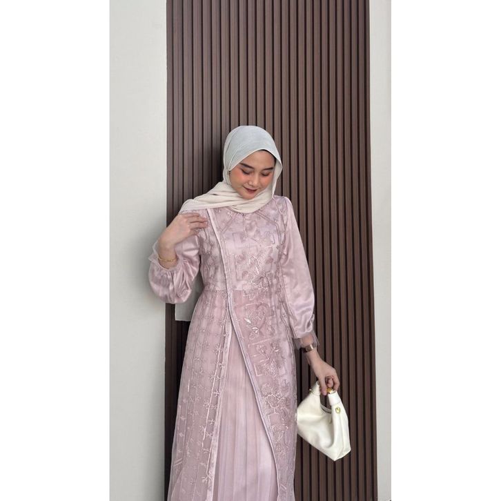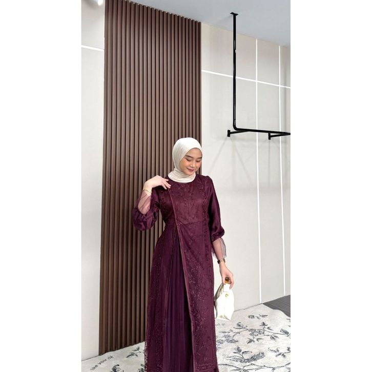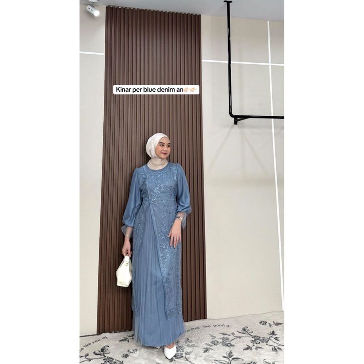 kinar dress tille brukat motif gamis kondangan satin silk seragam bridesmaid busui dress wanita kondangan