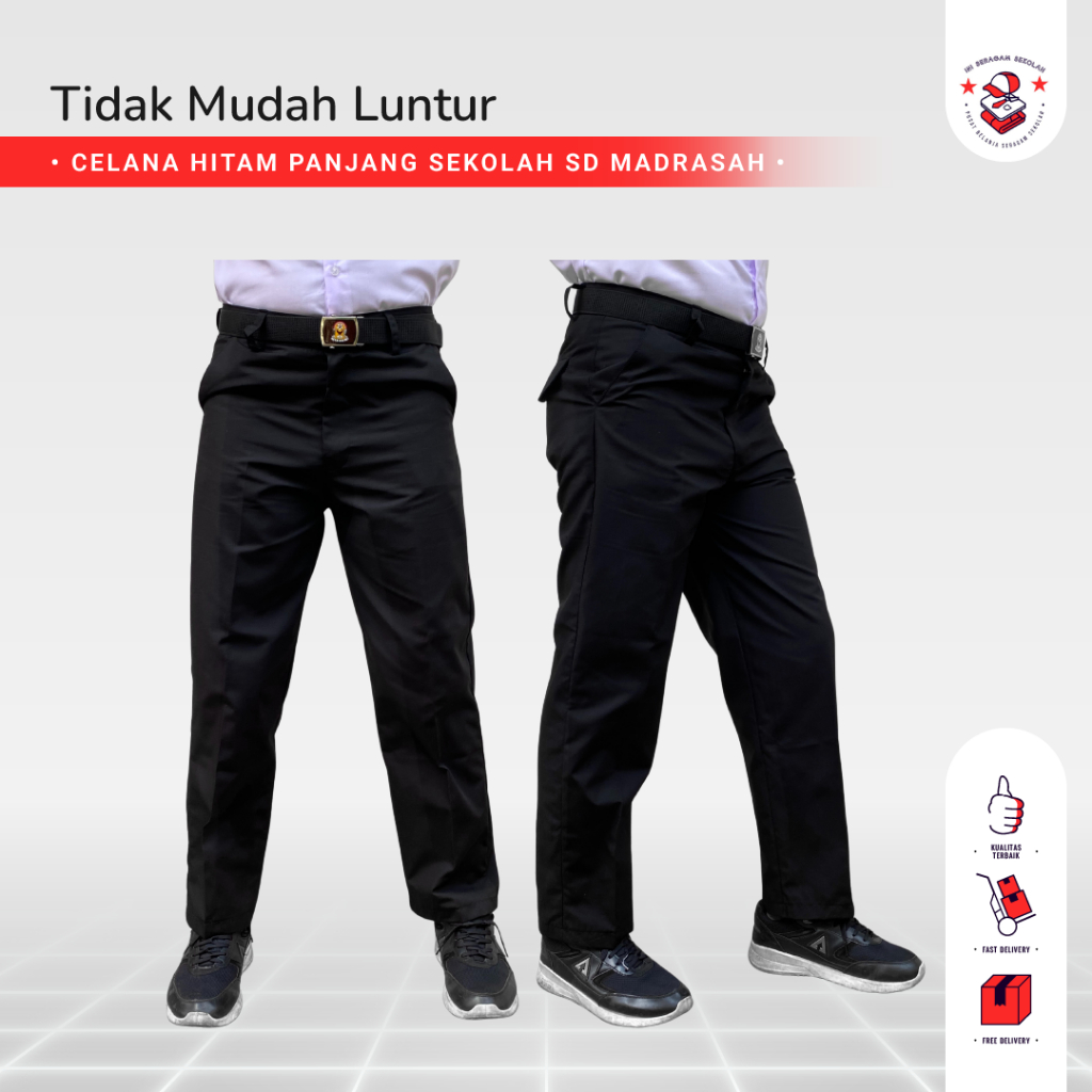 Seragam Sekolah SD Madrasah Celana Panjang Anak Laki Laki Warna Hitam Pinggang Karet Bahan Premium