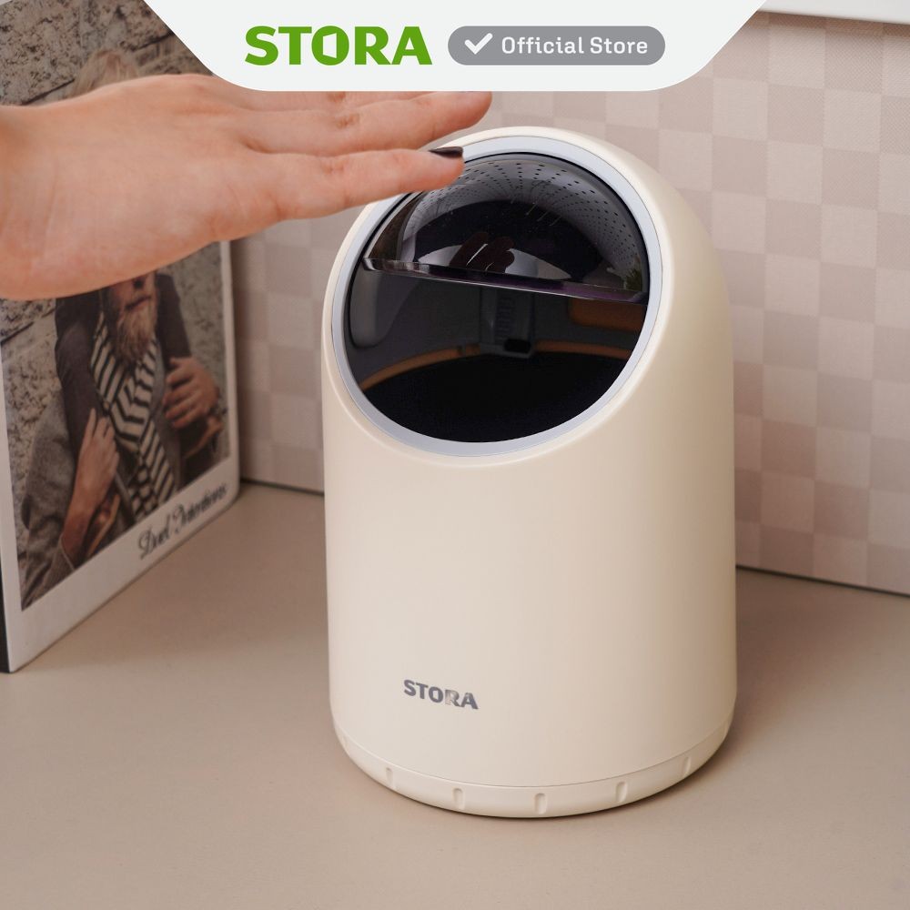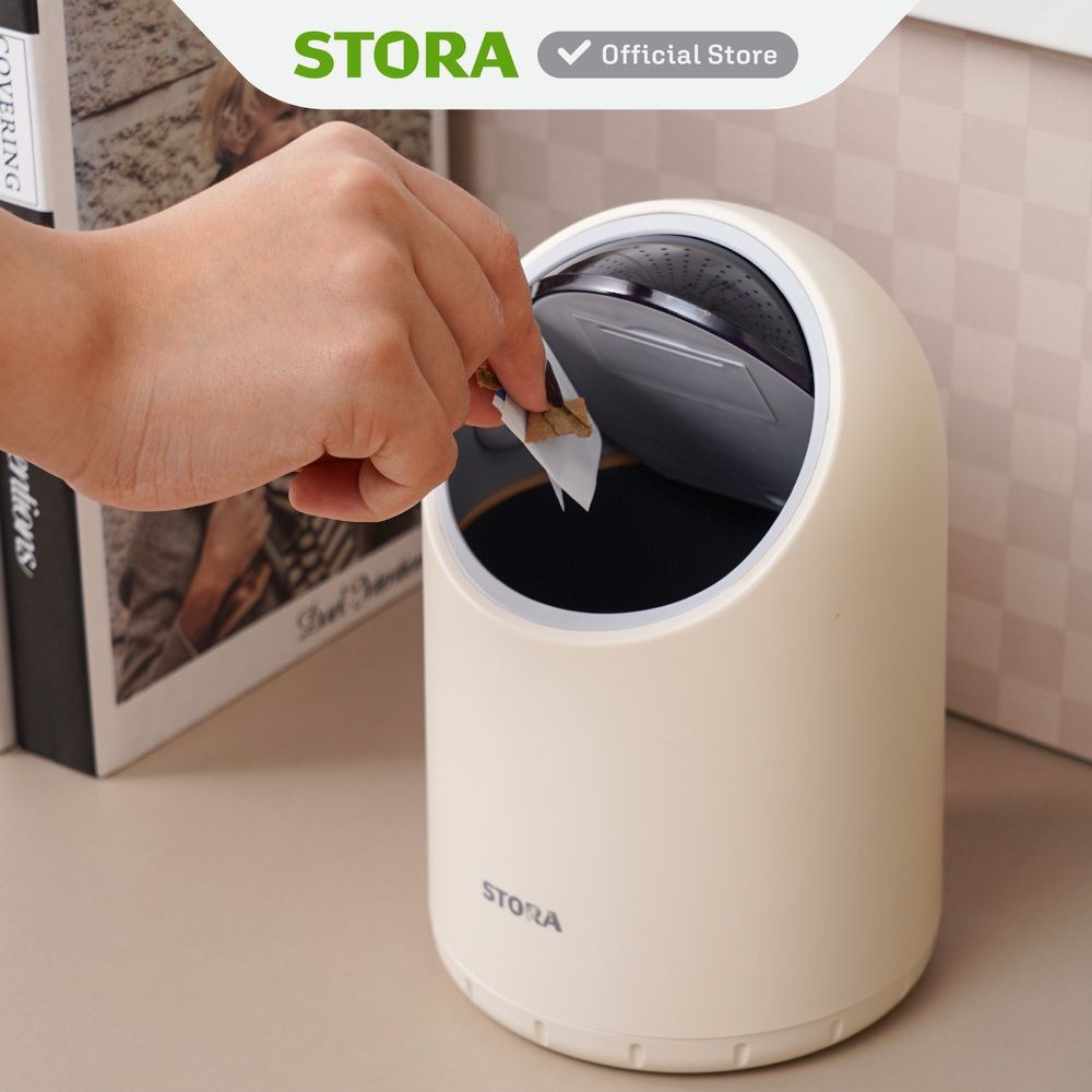 Stora 2 ltr Intelligent Tempat Sampah Meja Sensor Emoji - Putih Ivory Tong Sampah Wadah Pembuangan Alat Kebersihan Trash