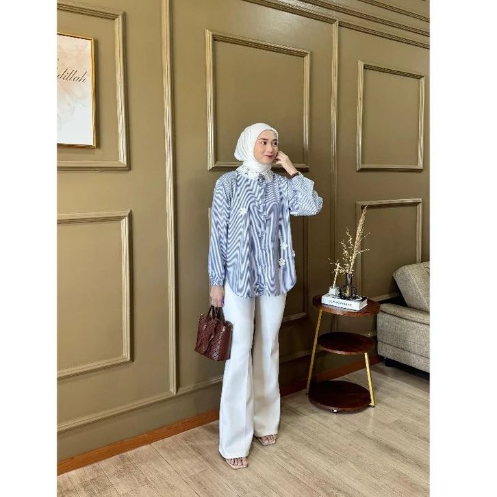 felixa shirt atasan wanita kekinian kemeja wanita korean style kemeja salur wanita bahan cotton