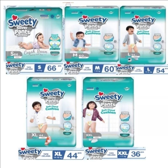 SWEETY SILVER PANTS JUMBO PACK S66 M60 L54 XL44 XXL36 / POPOK BAYI