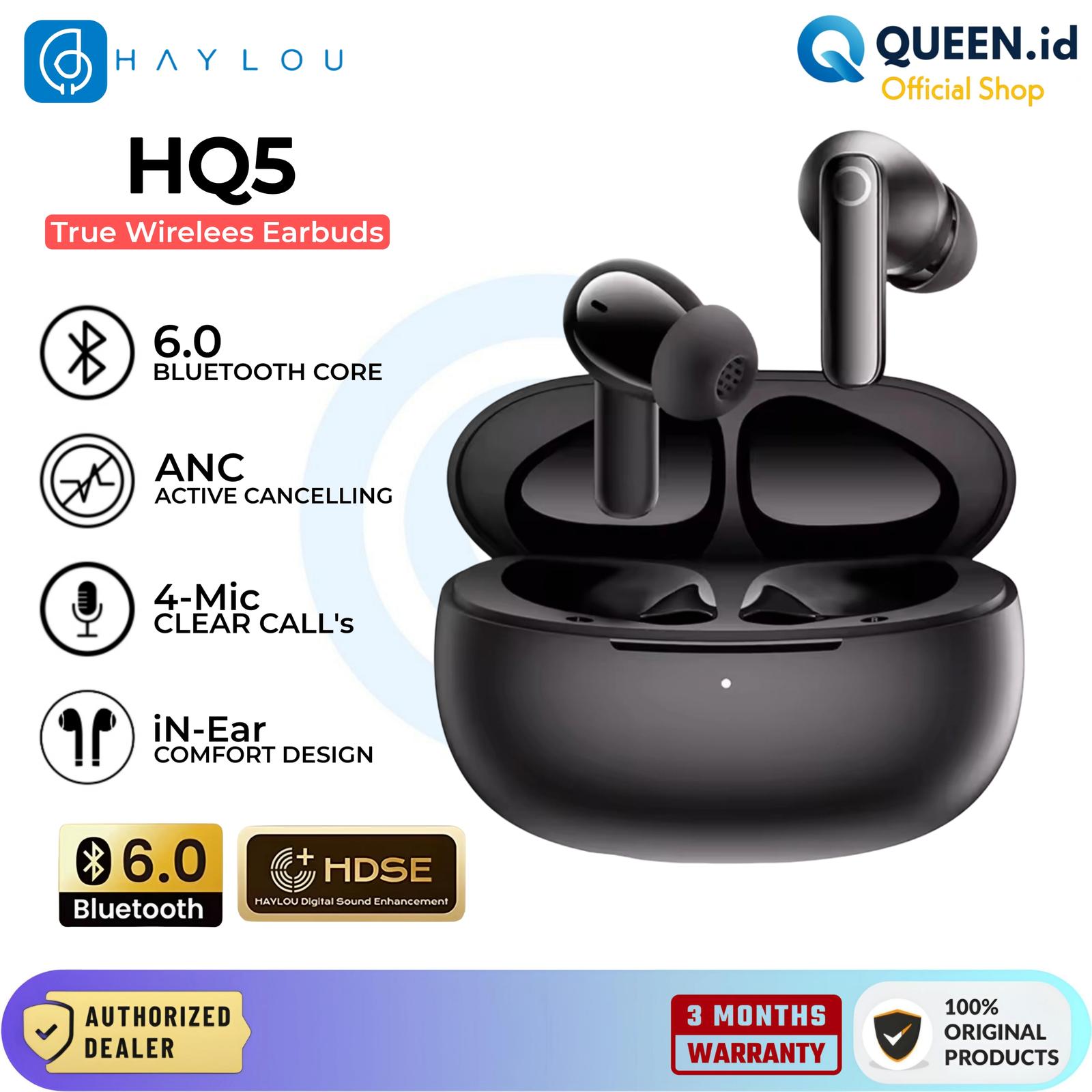 Haylou HQ5 TWS True Wireless Earbuds Headset Bluetooth 6.0 Adaptive ANC ENC HiFi Stereo Bass