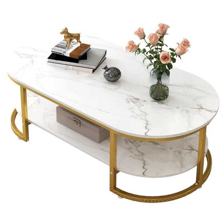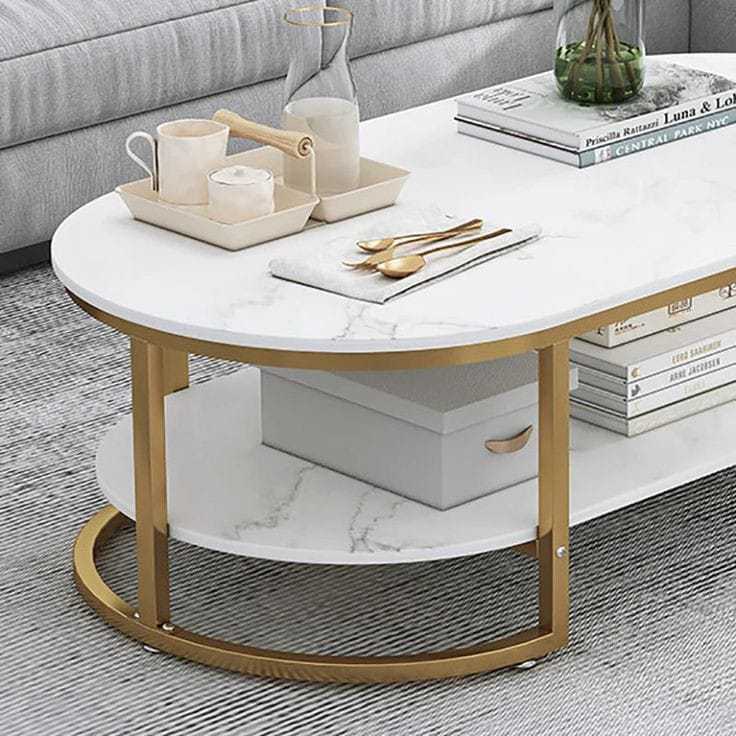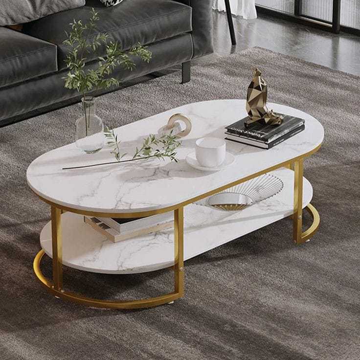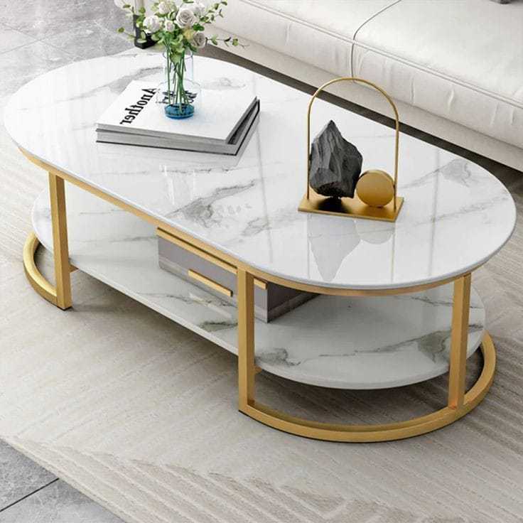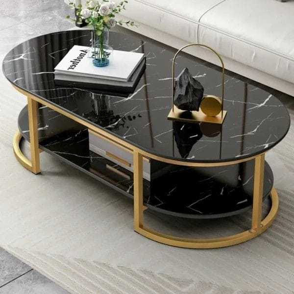RJP FURNITURE Meja Ruang Tamu Minimalist Modern Aestethic Marble Multifungsi Golden Black Edition - SHILO Versi 2