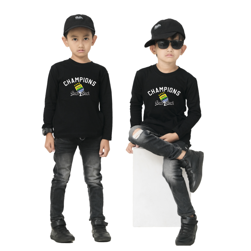 Kaos Persib Lengan Panjang Anak Laki2 Perempuan Baju Juara Deui Champion Back 2 Back Usia 1 - 12 Th
