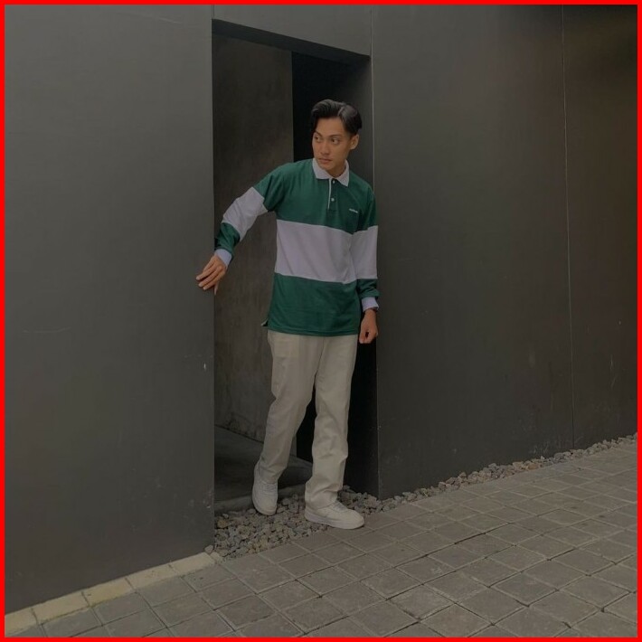Rugby Shirt Long Sleeve Polo Shirt Polo Lengan Panjang Hijau Green