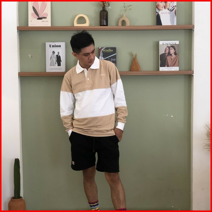 Rugby Shirt Long Sleeve Polo Shirt Polo Lengan Panjang Creem
