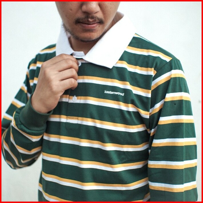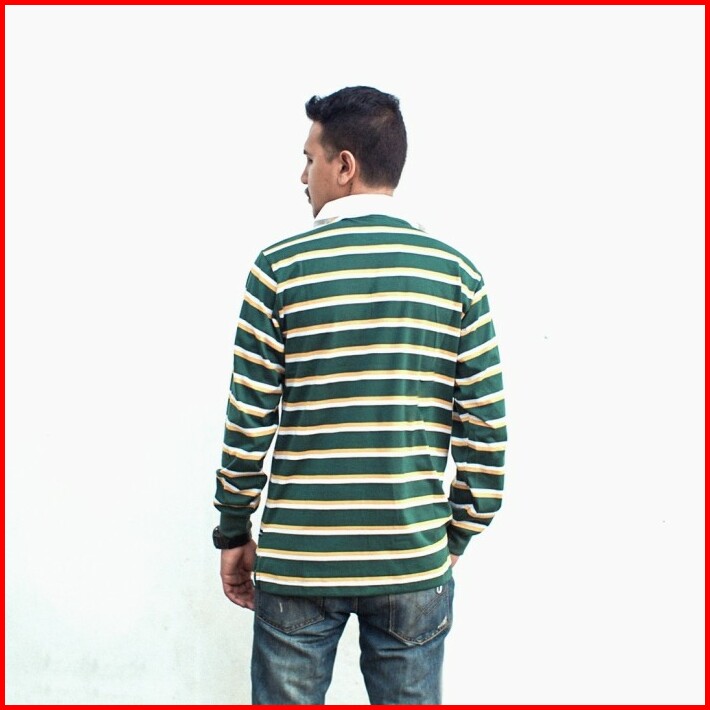 Rugby Shirt Long Sleeve Polo Shirt Polo Lengan Panjang Salur Stripe